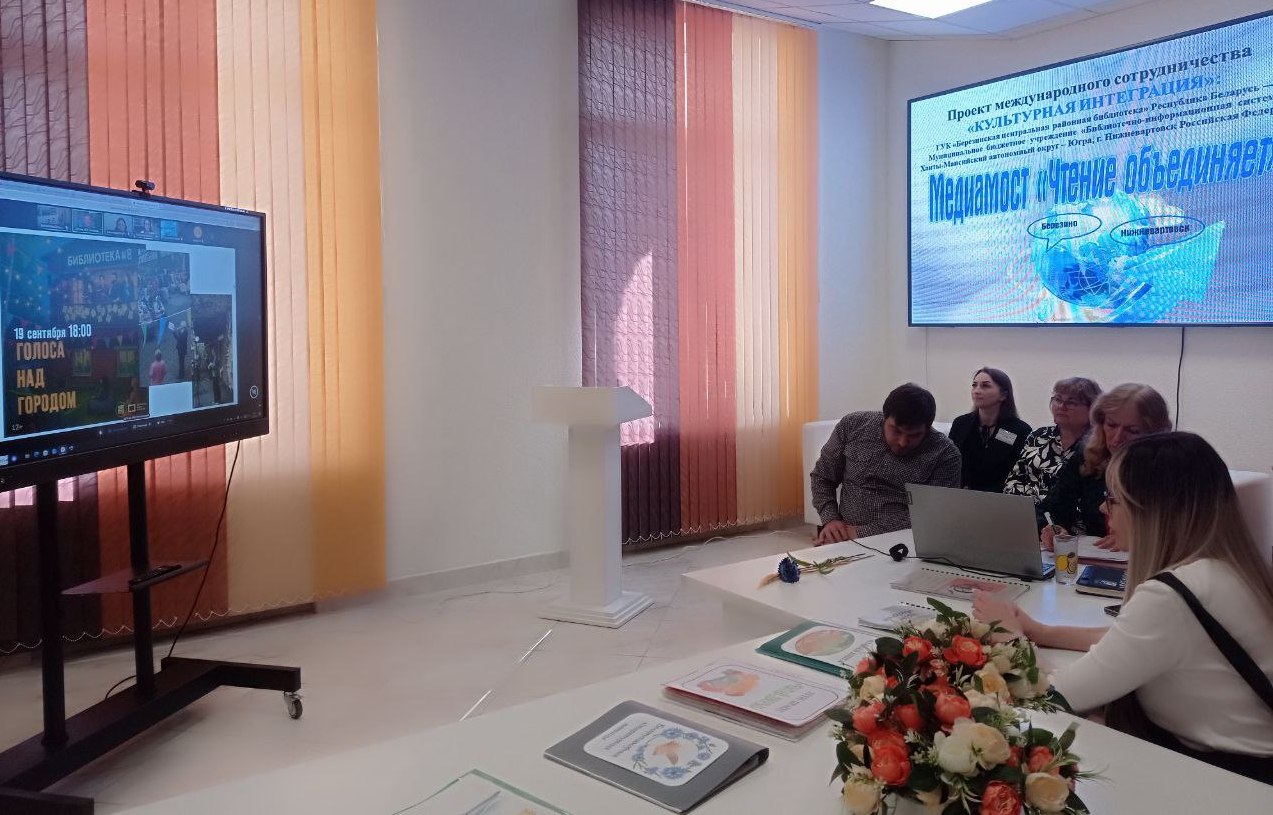 Программа первого в 2026 г. международного медиамоста«Чтение объединяет» предусматривала двухсторонний обмен творческими наработками и успешными практиками белорусских и российских коллег по сохранению и поддержанию интереса к чтению. Заведующий отделом маркетинга, социокультурной деятельности и методической работы ГУК «Березинская ЦРБ» Круталевич Т. Н .представила выступление с презентационным сопровождением на тему «Интерактивные формы популяризации художественной литературы» проекта «Живая книга». Сотрудники Центральной детской библиотеки, городской библиотеки №5, детской библиотеки №2 г. Нижневартовска представили формы активизации интереса к отечественной истории и литературе, стимуляция детского и семейного чтения. Российские коллеги отметили разнообразие форм массовой работы березинских коллег с литературно-художественной, дискуссионно-игровой, интерактивной основой, что позволяет через высокохудожественную литературу проводить воспитательно-профилактическую, просветительскую, агитационно-рекламную работу с населением. У березинских библиотекарей вызвал интерес цикл «Живой портрет неспокойной эпохи» проекта «Русский характер», приёмы популяризации терапевтических сказок,работа семейного клуба «Читайкины выходные».