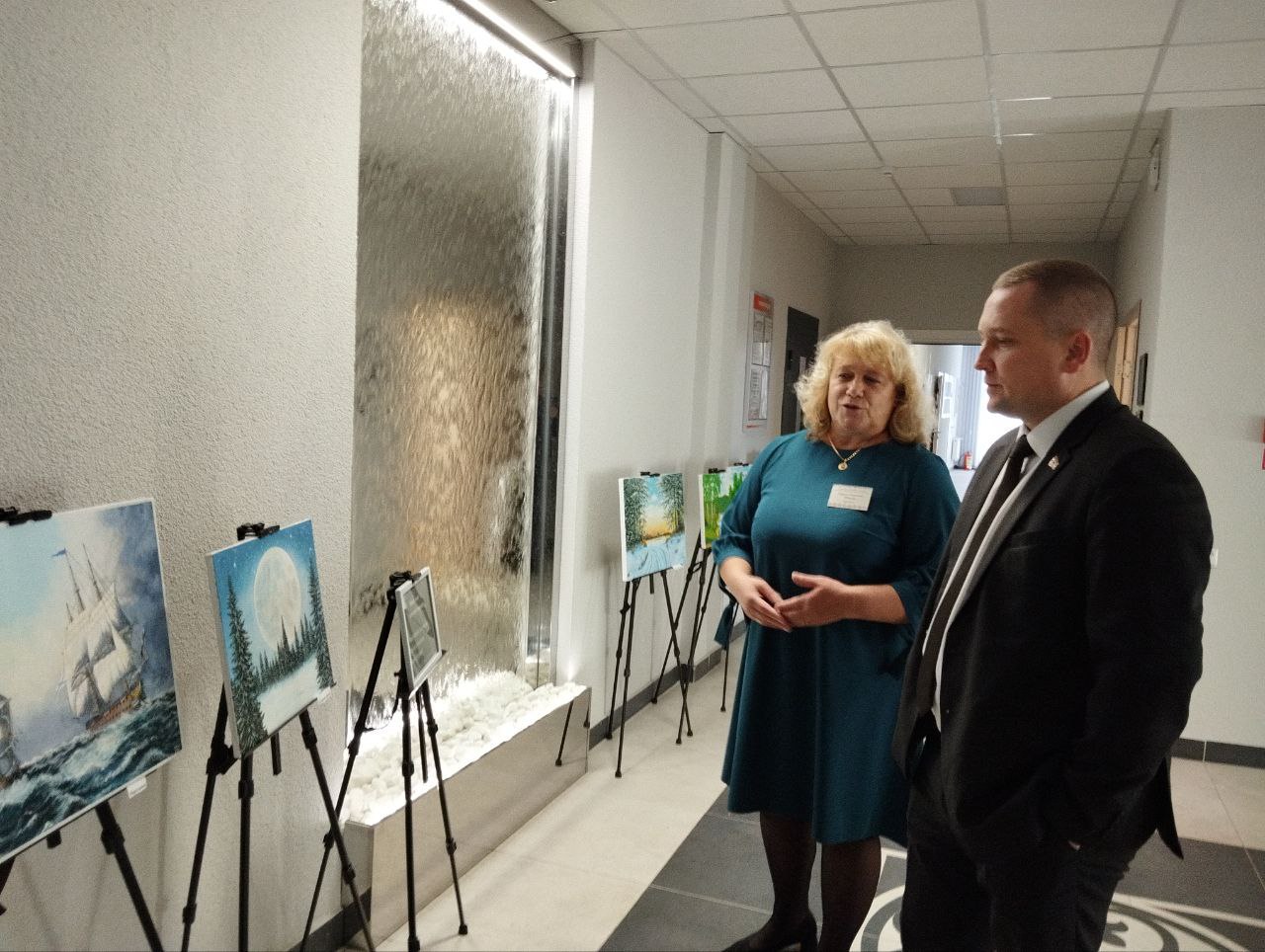 Председатель Березинского района Денис Дишук познакомился с выставкой "8 брендов Березинского края" и выставками картин художников -земляков Александра Кудряшова и Анатолия Вайниловича. которые организованы в Березинской центральной районной библиотеке.