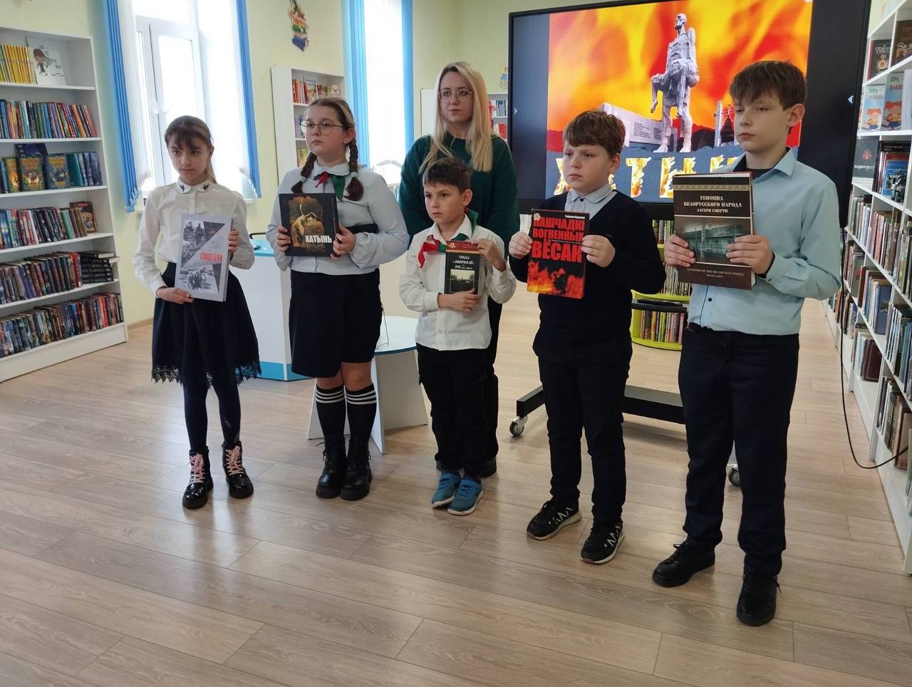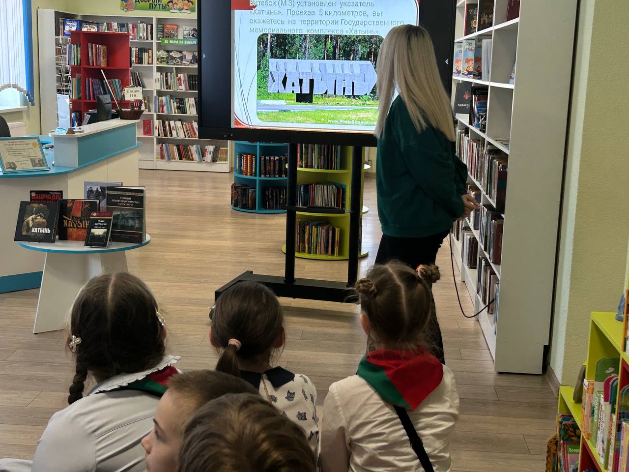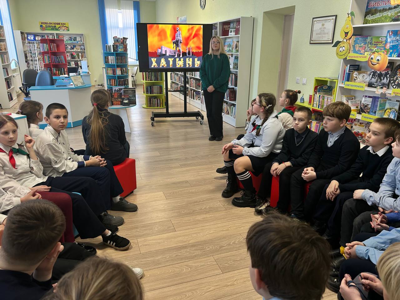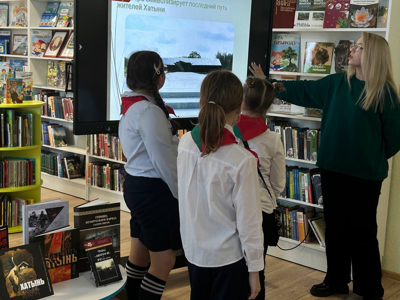 Отделом по обслуживанию детского читателя ГУК "Березинская центральная районная библиотека" проведён информационный час "Трагедия Хатыни" для учащихся 4 «А» класса СШ №2 г. Березино. Ребятам ещё раз напомнили не только об ужасной трагедии связанной с Хатынью, но и о сожжённых деревнях на Березинщине.