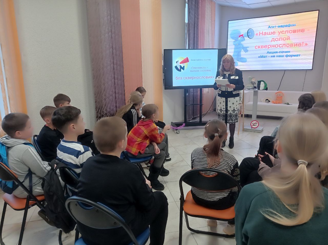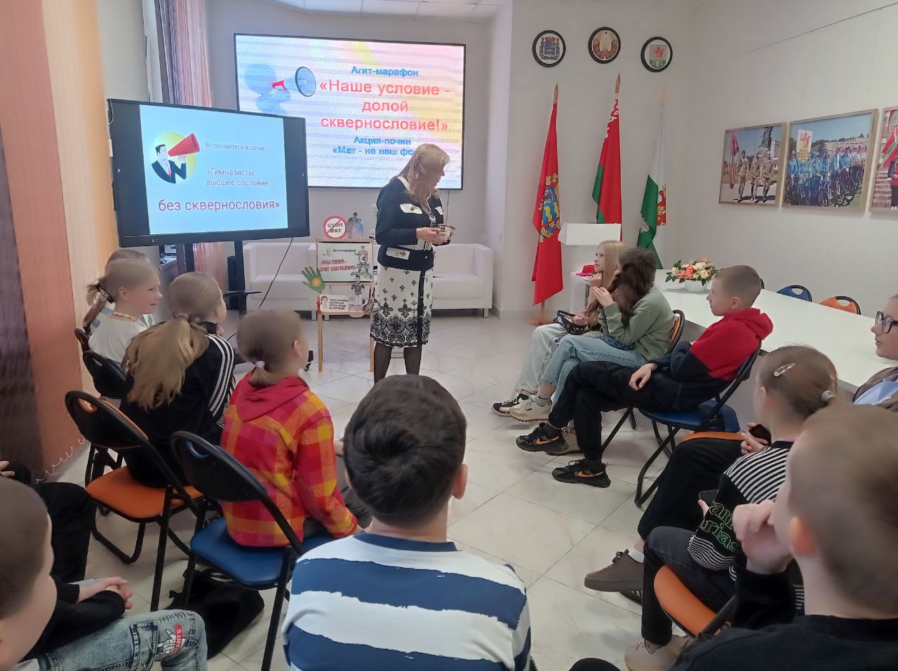 Проект Березинской районной библиотеки «Быть подростком – непросто» предусматривает проведение в подростковой среде мероприятий по профилактике вредных привычек, экстремального поведения и правонарушений, по формированию у юного поколения морально-нравственных норм поведения в обществе. Агит-марафон «Наше условие – долой сквернословие!» был адресован гимназистам. Убедительно разъяснить и показать пагубность привычки сквернословить помогло библиотекарям использование проверенных в подростковой аудитории приемов. Час душевного потрясения «Грязь на языке – грязь в душе» включал поучительные истории «Язык мал, но столько судеб сломал», поэтический сатирикон «Словесный сор», юморески «Испорченный телефон», «Рот на замок», «Бабушкина наука», сюжеты народных сказок «Наговорная водица» и «Змеиный язык». Дополнением прозвучали научные факты и результаты опытов о последствиях положительных и отрицательных словесных посылов на живые организмы. Завершило агит-марафон объявление почина «Гимназисты – высшее сословие без сквернословия» с призывом «Снизим ругаемость – увеличим улыбаемость».
