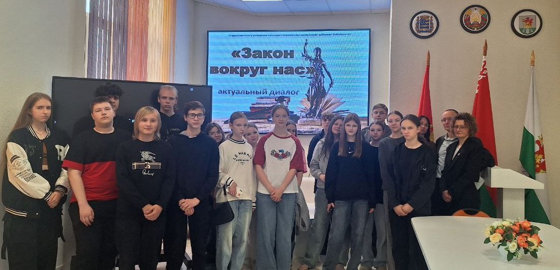 В ГУК «Березинская центральная районная библиотека» прошёл актуальный диалог «Закон вокруг нас». Для учащихся Березинской гимназии выступили приглашённые гости: заведующий нотариальной конторой Геннадий Николаевич Жавронок и заведующий юридической консультацией, адвокат Минской областной коллегии адвокатов Марина Николаевна Гринкевич-Гущина. Ребята поговорили на актуальные темы для размышления. Узнали о правах и обязанностях, а также затронули тему суицида. Марина Николаевна рассказала, какие виды ответственности несут за те или иные преступления и что лучше думать головой, а не попадать в неприятные ситуации, о которых можно жалеть всю оставшуюся жизнь. В заключении были процитированы слова Вольтера: «Только слабые совершают преступления: Сильному и счастливому они не к чему…».