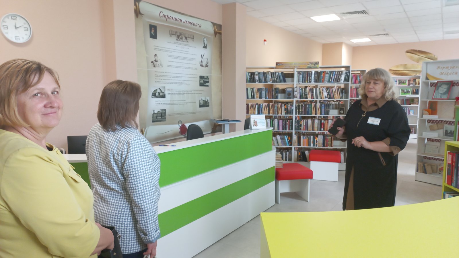 В рамках взаимопосещений учреждений культуры соседних Березинского и Червеньского районов Минщины ГУК "Березинская центральная районная библиотека" посетили ведущие специалисты ГУК "Червеньская центральная районная библиотека" с миссией мониторинга деятельности библиотечных учреждений района и обмена опытом. Перед началом рейда по библиотекам Березинщины червеньские коллеги совершили ознакомительную экскурсию по главной библиотеке города и района, оценили комфортность интерьера и эстетическую привлекательность библиотечного пространства, актуальность наглядности востребованность информационно-краеведческого центра библиотеки и благоустроенность территории.