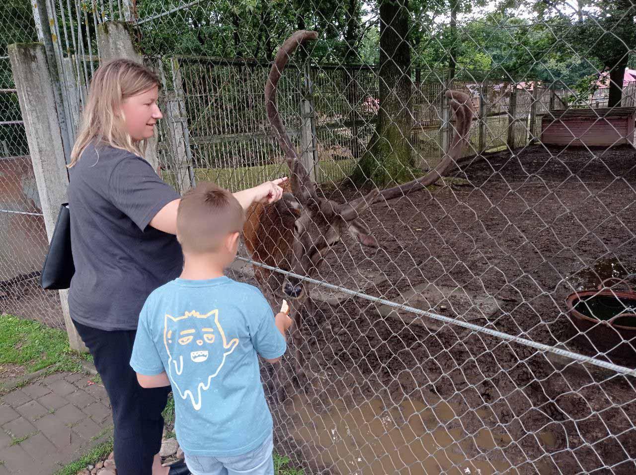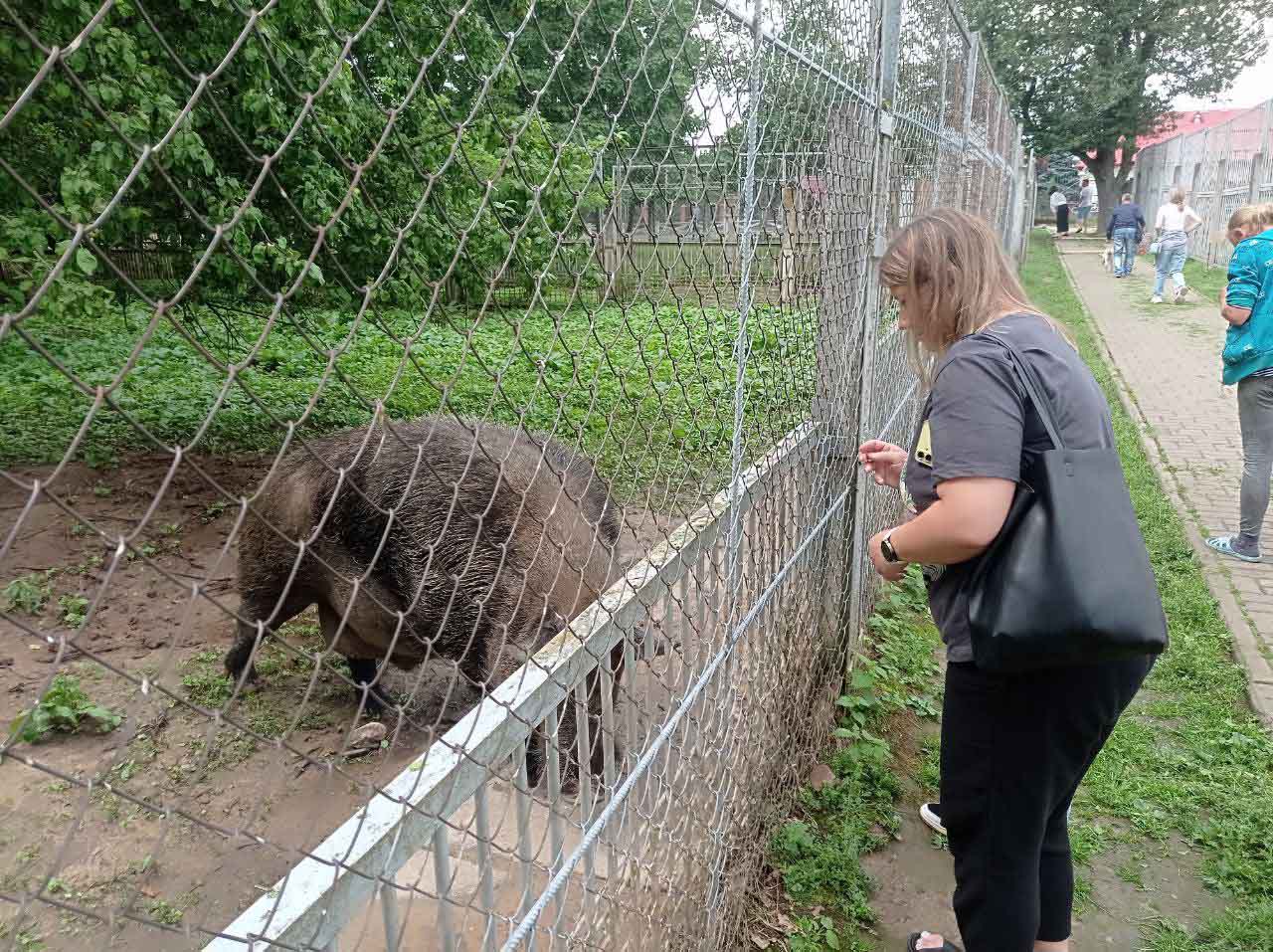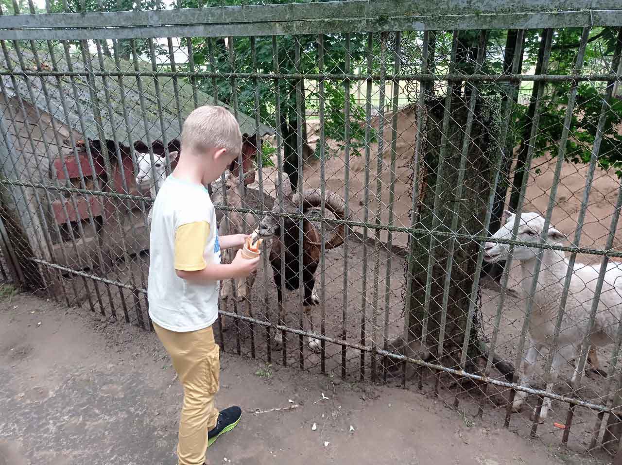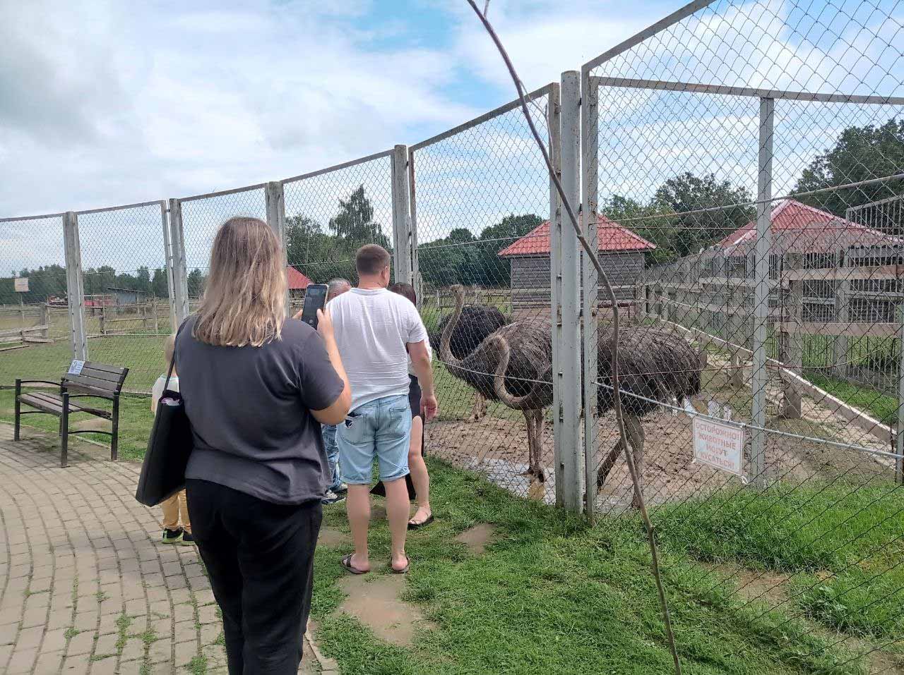 На территории проложена мини-железная дорога с «громким» именем «Белорусское сафари». Желающие прокатились на поезде, и познакомились поближе с обитателями большого вольера.