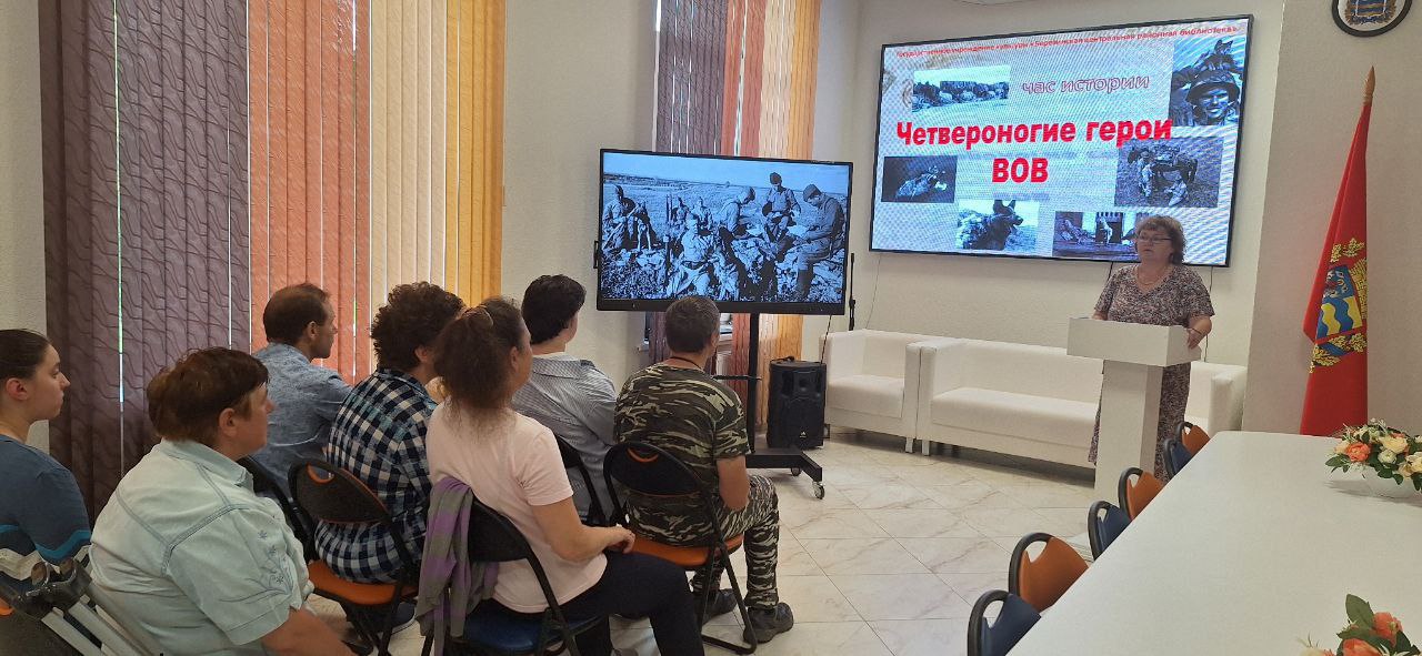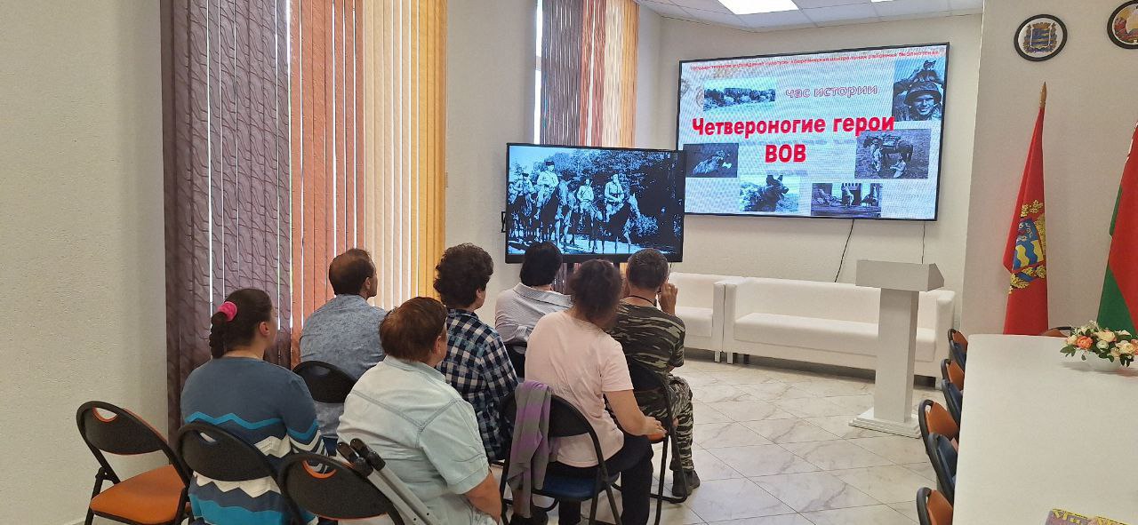В ГУК "Березинская центральная районная библиотека" для участников совместного проекта ТЦСОН и библиотеки "Чудесный мир книги" прошел час истории «Четвероногие герои ВОВ». Ребята узнали, какой огромный вклад в Победу внесли животные. И это не только собаки, кошки, лошади, голуби, но и олени, и даже верблюды. В море рядом с людьми воевали дельфины. Помогали, спасали, погибали. Совершали подвиги. В своей беседе библиотекарь не обошла стороной вопрос о том, какими необходимыми на войне профессиями пришлось овладеть животным и почему в параде Победы в 1945 году рядом с солдатами-победителями принимали участие собаки. С большим интересом ребята слушали, рассуждали, делились мнениями. Мероприятие сопровождалось демонстрацией видеоролика «Животные - герои Великой Отечественной войны».
