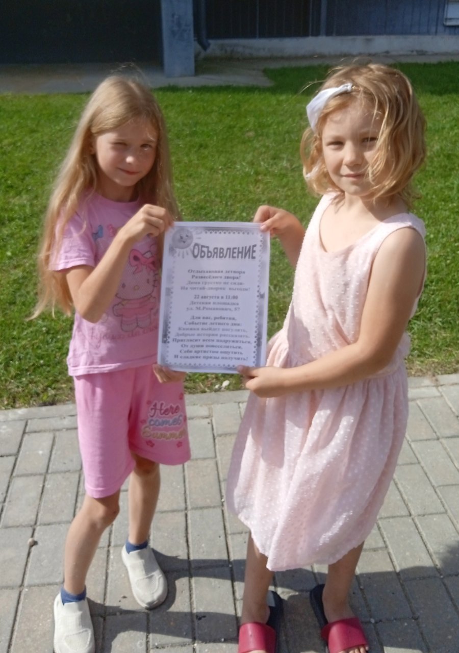 Среди юных жителей многоквартирного дома по ул.М.Романович, 57 г.Березино, прямо во дворе на детской игровой площадке сотрудники ГУК «Березинская центральная районная библиотека» провели агит-акцию «На читай-дворик приходи!». Клоун в зазывной форме приглашал ребят с пользой провести время в ближайшую пятницу, стать героями читай-компании на игровой площадке своего дворика, принять участие в импровизированном представлении «Книжка вышла погулять». Объявления о предстоящем мероприятии были оставлены на видных местах у подъездов дома с целью рекламы «Сам приходи – и друзей приводи!»