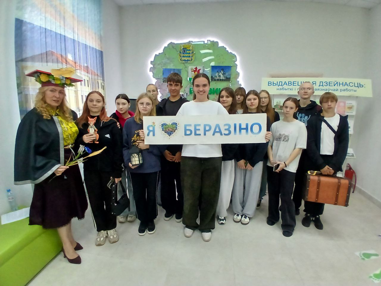 Радость открытия новых удивительных фактов истории родного края подарил членам ученической бригады вторичной занятости краеведческий экскурс «Березинщина знакомая и незнакомая», который представили сотрудники Березинской центральной районной библиотеки. Путешествие начали с дома-легенды, одного из самых приметных в Березино – усадьбы Потоцких. Поскольку сейчас этот памятник архитектуры находится на реставрации, знакомство с ним смогло состояться, благодаря оригинальному баннеру с изображением постройки 175-летней давности в сквере около библиотеки. Стены здания помнят графов Маврикия и Августа, которым здание перешло от родителей Анны и Александра Потоцких, а затем –школьные будни березинских ребятишек, когда тут располагалась городская школа.