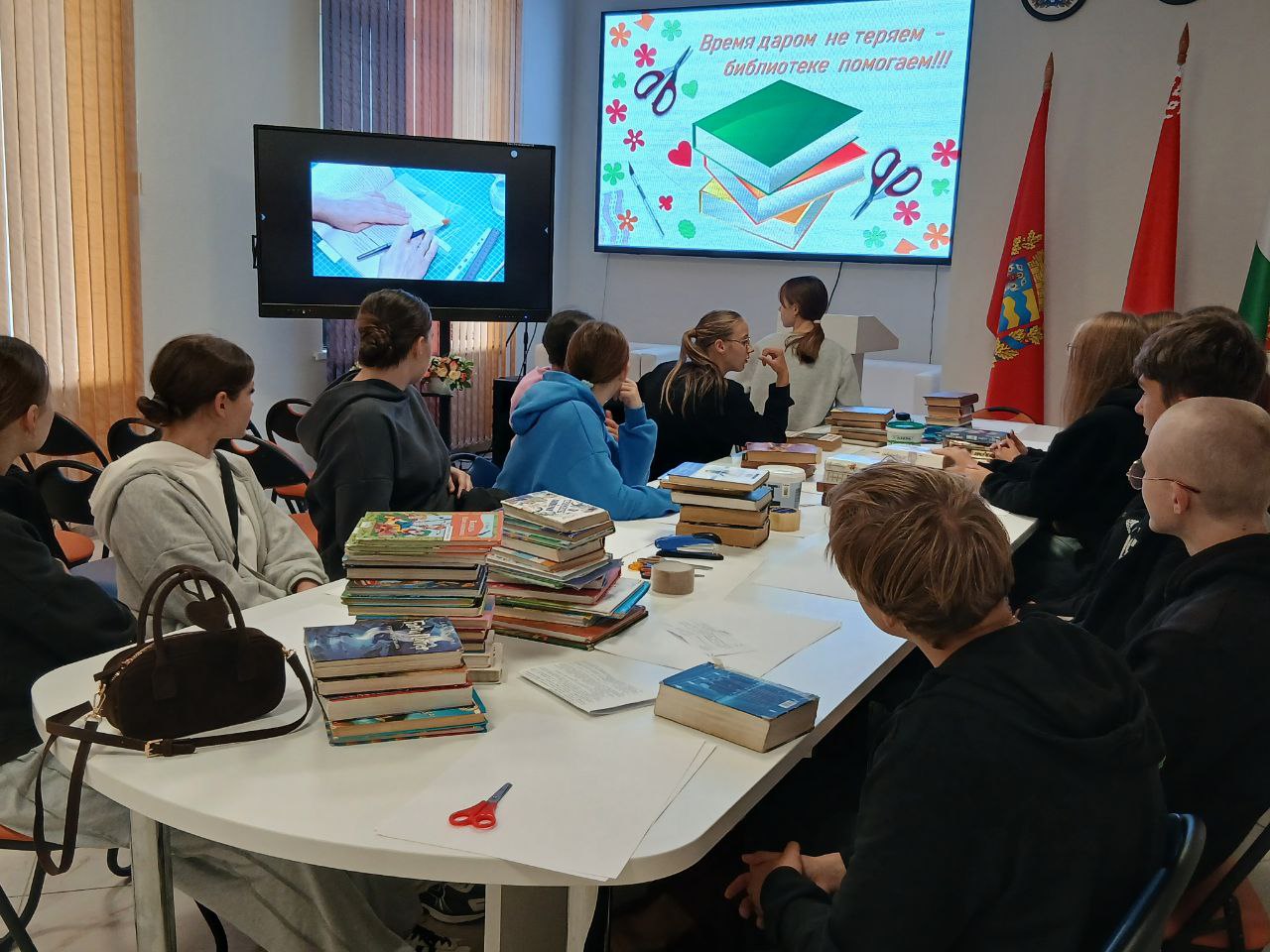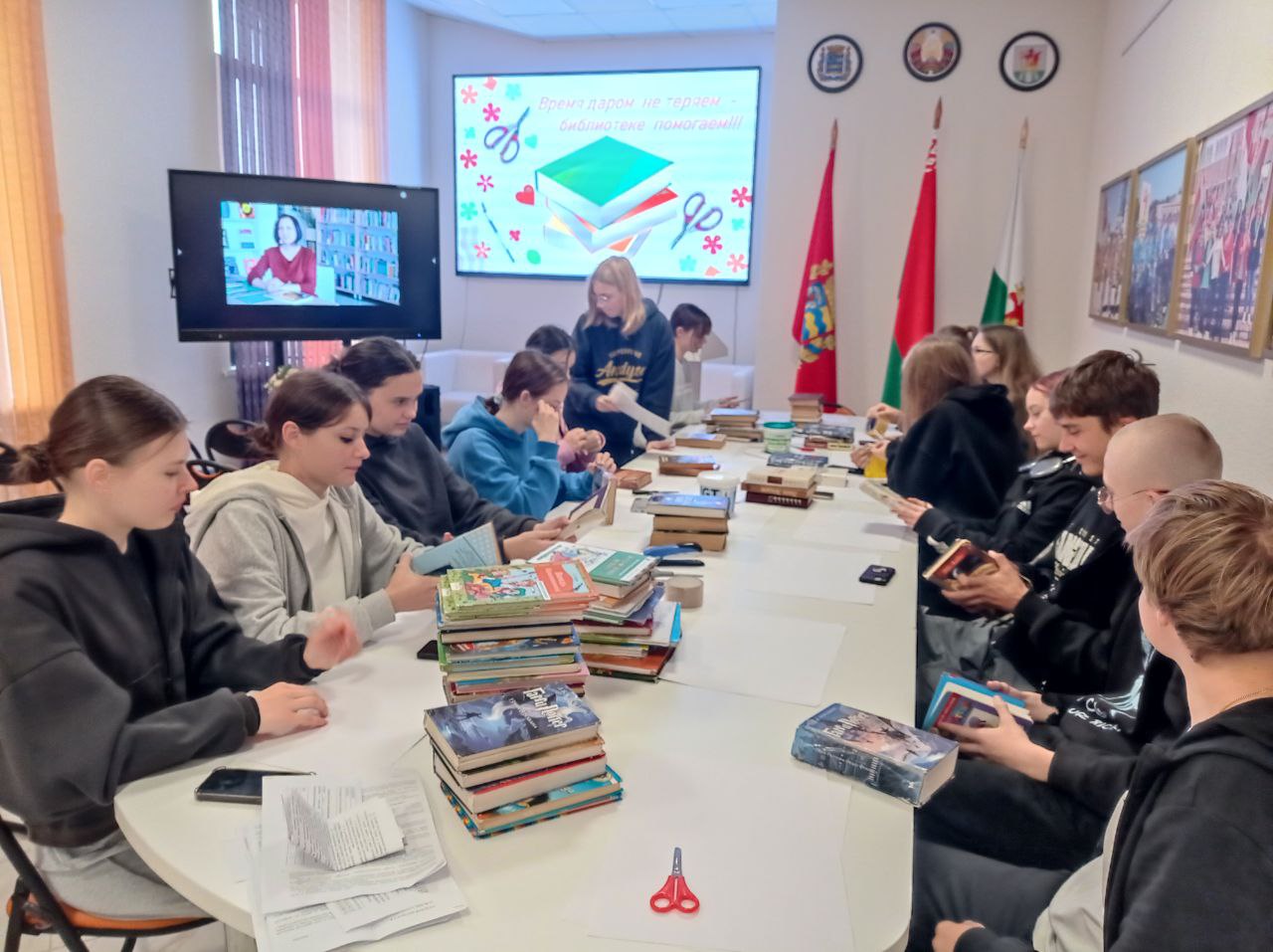 Второй день работы членов ученической бригады вторичной занятости в ГУК “Березинская центральная районная библиотека” прошёл плодотворно, продуктивно и интересно. Ребята занимались ремонтом библиотечных книг, придавая им вторую жизнь. Затем активно включились в интеллектуально-развлекательную игру “Хочу всё знать!”, где разделившись на две команды сразились в эрудиции. Ребята из команды победителей “Война и мир” были отмечены сладкими призами.