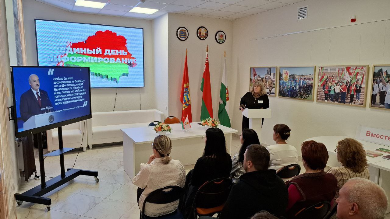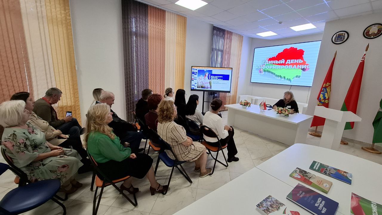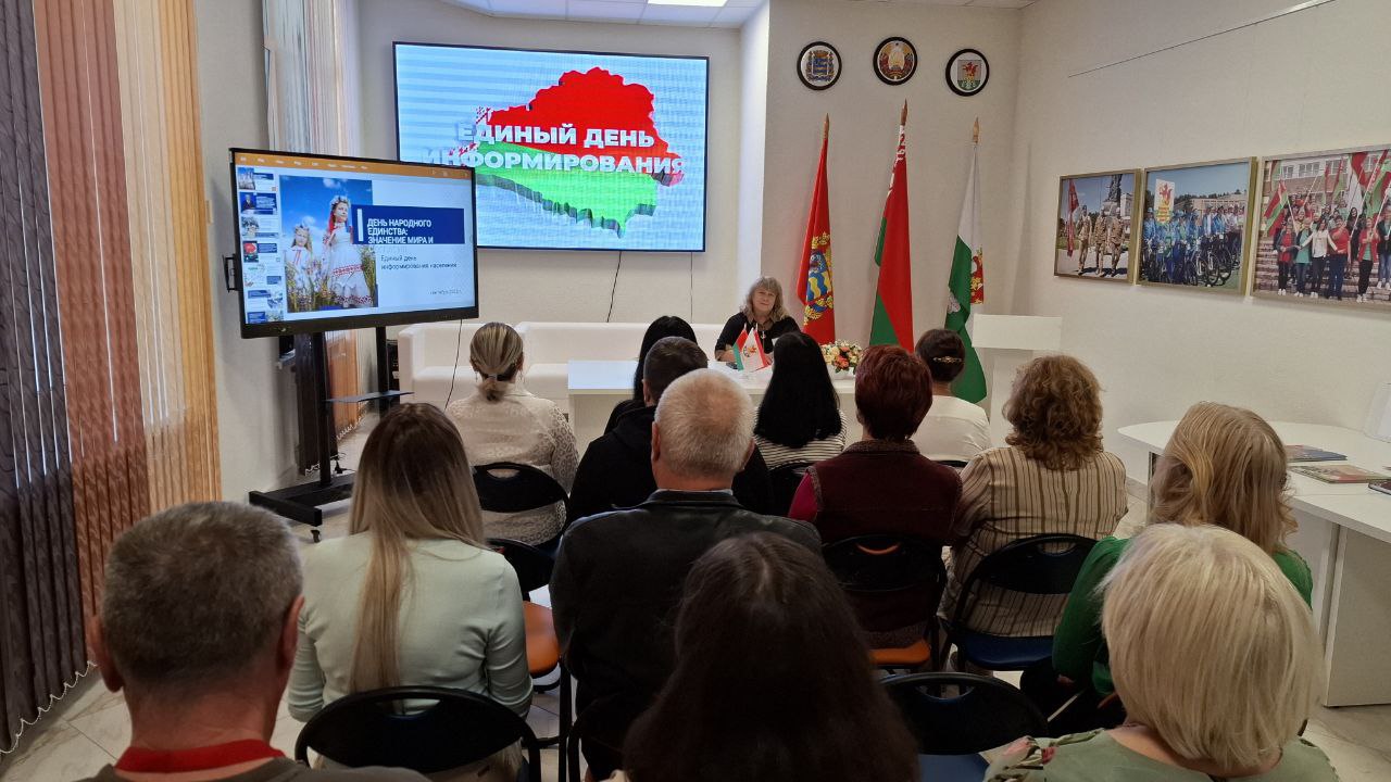 В коллективе ГУК "Березинская центральная районная библиотека" прошёл Единый день информирования на тему "День народного единства: значение мира и согласия". Основную тему Единого дня информирования, посвященную отмечаемому 17 сентября в нашей республике Дню единства, историческим корням этого праздника и его влияния на дальнейшее развитие суверенной Беларуси раскрыла директор библиотеки Наталья Маевская.
