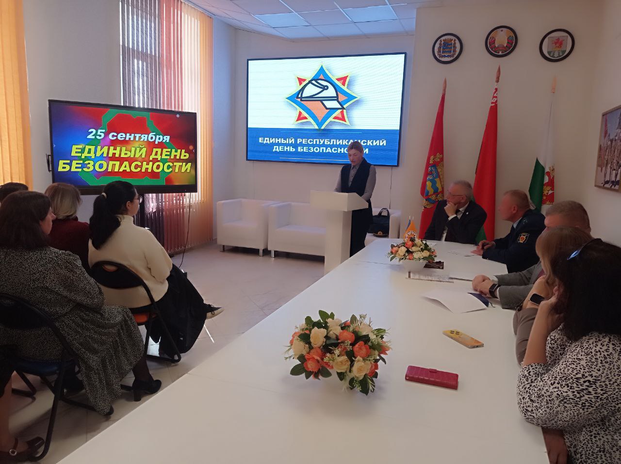 Перед присутствующими выступили председатель Минской городской организации Белорусского профессионального союза работников культуры, информации, спорта и туризма Сергей Крысенко, прокурор Березинского района Василий Вербицкий, главный правовой инспектор труда Минской городской организации Белорусского профессионального союза работников культуры, информации, спорта и туризма Алла Дёмина, главный технический инспектор по охране труда Виталий Ракович.