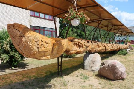Это не просто деревянная фигура огромных размеров в форме ложки. На ней вырезано множество рисунков, большинство из которых таят в себе сакральный смысл рождения и жизни, герб города Березино и много других знаков, вырезанных местными мастерами.