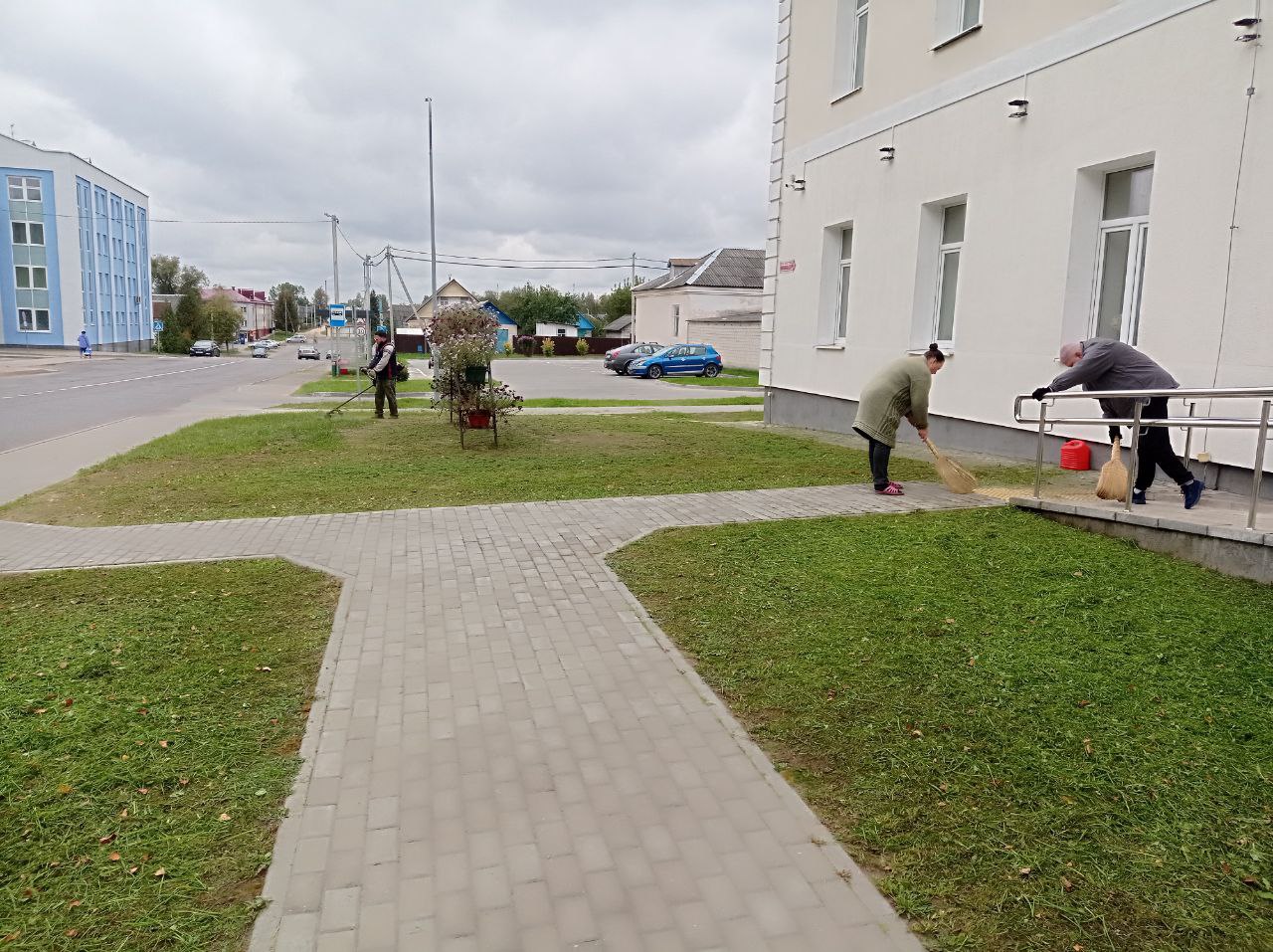 В рамках районного субботника работники Березинский центральной библиотеки наводят порядок на прилегающей территории около здания учреждения.
