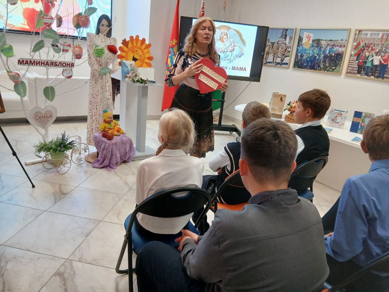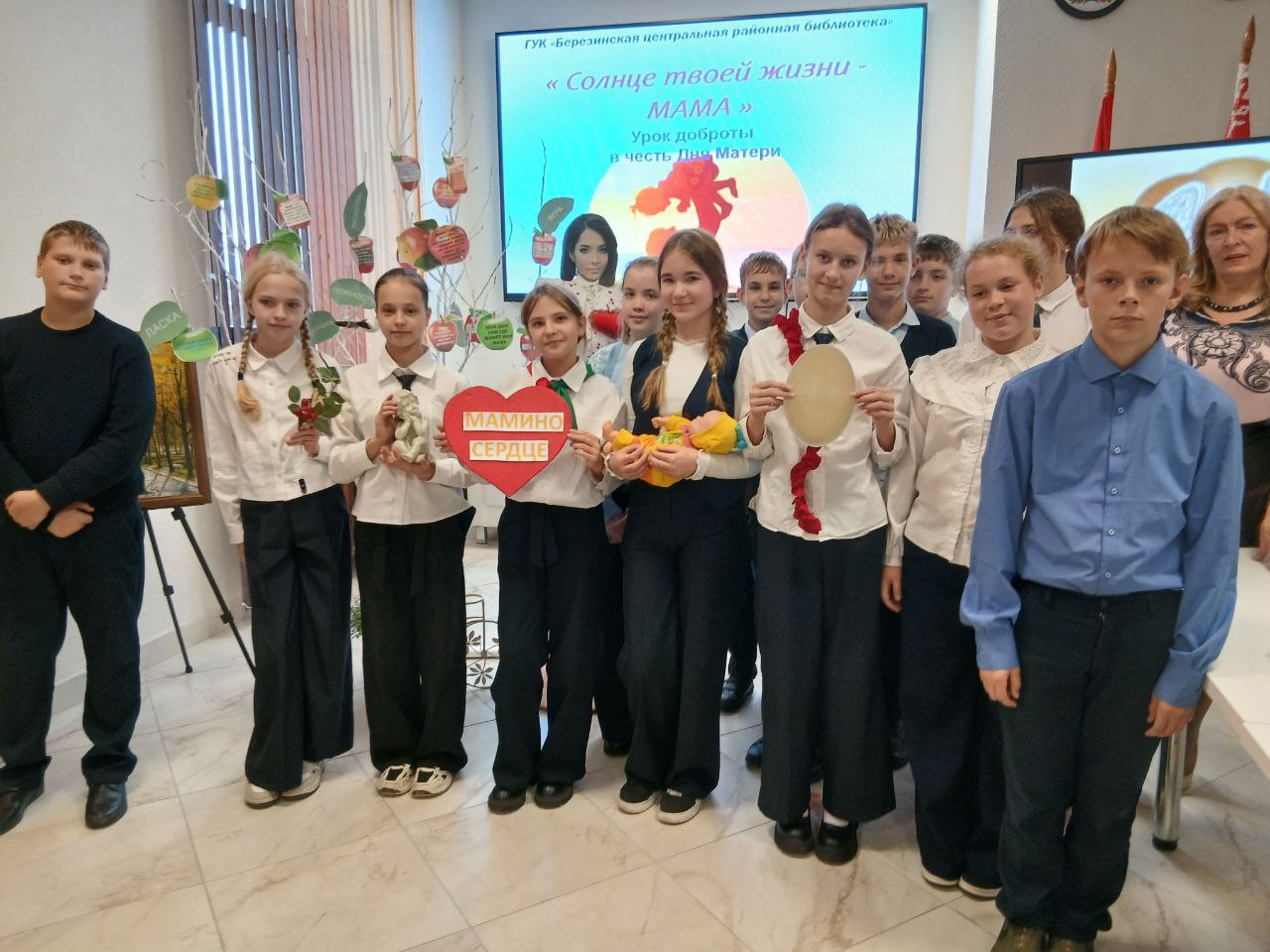 Неделя родительской любви объединяет День Матери и День Отца и включает эстафету уроков доброты цикла «Мама і тата, вы- маё свята» Березинской районной библиотеки для школьников всех городских школ . Открыл цикл урок доброты «Солнце нашей жизни-Мама» для учащихся СШ № 2 г. Березино. Сотрудники районной библиотеки представили ребятам экспозицию «Мамина яблоня», притчу о матерях, сказку-быль «Мамин цветок», легенду о земном ангеле, яркие литературные сюжеты и жизненные истории о жертвенности и силе материнской любви, о маминых мудрых уроках. Особый акцент был сделан на осознание того, что дети ранят маму всех больней, и самые горькие мамины слёзы от жестокого бездушья и потребительского эгоизма детей. Мама перенесёт все: и обиды, и боль, и горе, но на мамином сердце навсегда останется рана. Основным призывом урока доброты прозвучали слова : «Как солнце в вашей жизни Мама, так будьте же ее любви достойны!» . Сосредоточенность на лицах и слёзы на глазах слушателей засвидетельствовали эффективность использованных библиотекарями воспитательно-эмоциональных на юную аудиторию. Что идёт от сердца- до сердца и доходит!