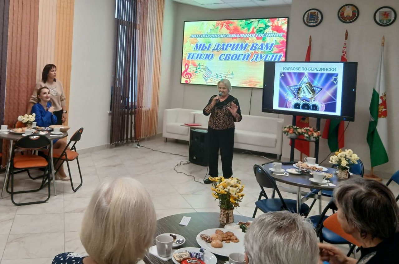В ГУК "Березинская центральная районная библиотека" прошло заседание литературно-музыкальной гостиной на тему "Мы дарим Вам тепло своей души". Приглашенные активно демонстрировали свои таланты. Наталья Васильевна Трепенок проникновенно исполнила песню «Бацькаўшчына», а Евгения Петровна Бегунович прочла любимые стихи. Самые активные смогли воплотиться в образы Маши Распутиной, Ирины Аллегровой и Надежды Кадышевой, исполнив их известные шлягеры. Особое настроение придавали музыкальные номера в исполнении солистов Косовского сельского клуба-библиотеки Галины Бобрович и Александра Антонюка. По душе всем пришлись конкурсы и караоке. Все натанцевались, напелись, пообщались от души за чашкой ароматного чая и прикоснулись к прекрасному творчеству художественных картин Любови Забаронок.
