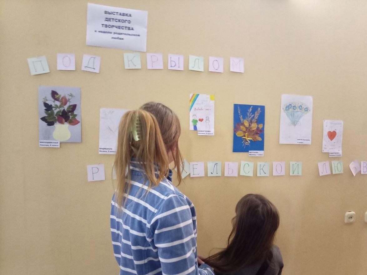З 14 па 24 кастрычніка ў Багушэвіцкай СІБК праходзіла выстава дзіцячай творчасці “Пад крылом бацькоўскай любові”, прысвечаная Тыдню бацькоўскай любові. Малюнкі і кампазіцыі з фларыстычнага матэрыялу, якія падрыхтавалі вучні Багушэвіцкай СШ для сваіх любых матуль і бацькоў, прыйшліся даспадобы наведвальнікам нашай установы.