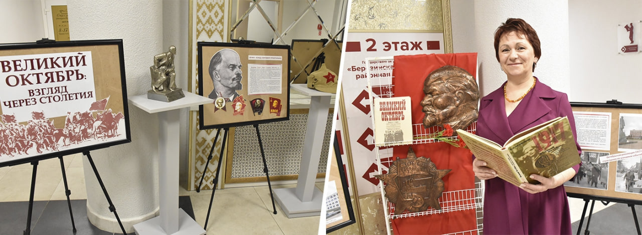 Традиционной организацией тематической выставки в фойе встречают праздник Великого Октября в Березинской центральной районной библиотеке.