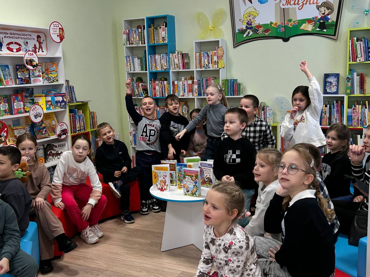Ребята разделились на команды и участвовали в увлекательных играх «Собери сказку», где надо было сложить картинки по сказкам, «Музыкальная шкатулка» в которой нужно было узнать сказку по мультфильмам и сказкам, «Оживи сказку» где надо было каждому члену команды изобразить на рисунке сказочного героя и другие. Время прошло весело, позновательно, интересно и не заметно. Все остались довольны и взяли книги для домашнего чтения.