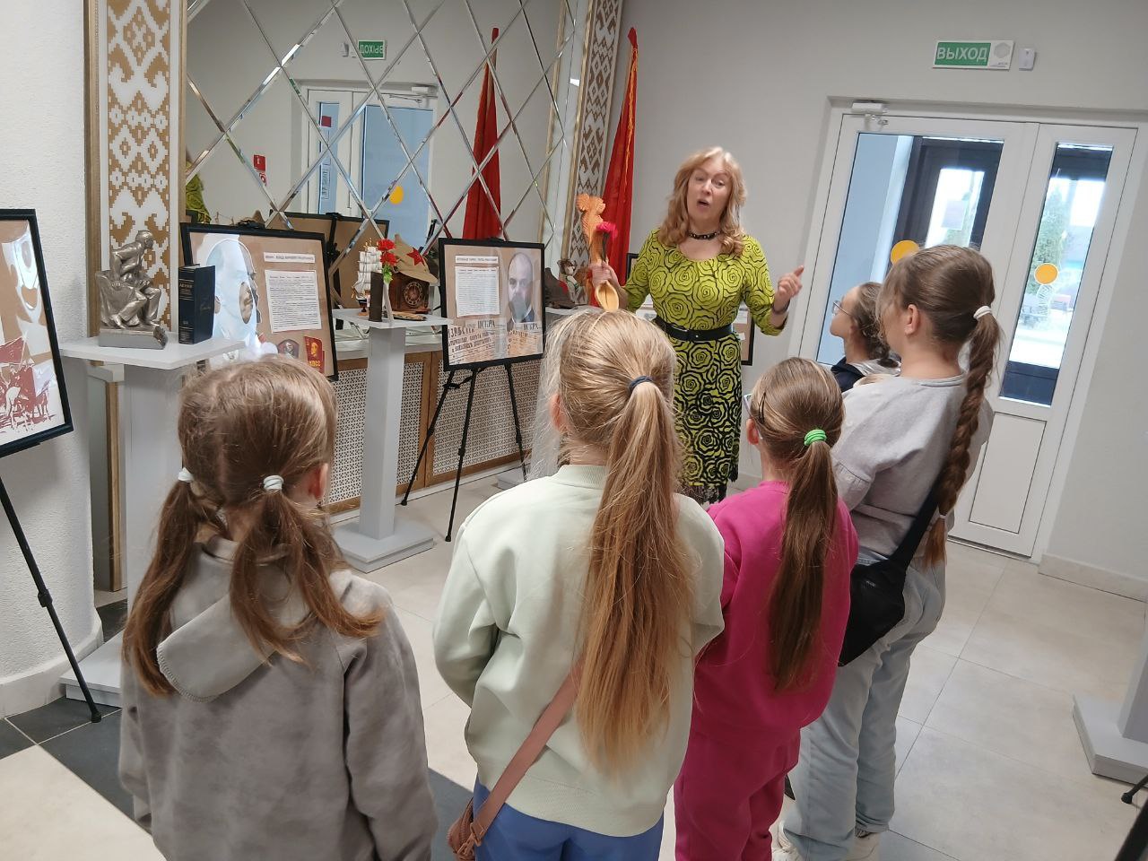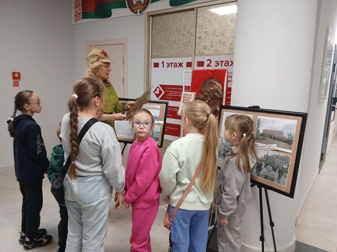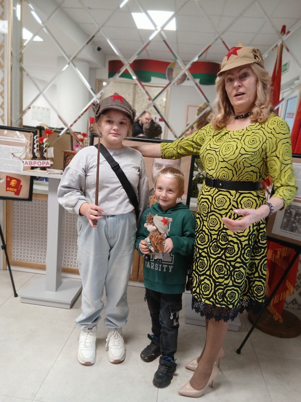 В канун праздника дмитровичские школьники посетили выставку Березинской центральной районной библиотеки «Великий Октябрь: взгляд через столетия» и познакомились с главными завоеваниями Великой Октябрьской революции не по учебнику, а по представленной им блиц-информации: «Из «Искры» возгорелось пламя», «Выстрел «Авроры» по царскому самодержавию», «Красноармейцы- защитники революции», «Орден Октябрьской революции», «Лампочка Ильича-луч света в царстве безграмотности», «Вождь на постаменте», «Фейерверк праздничных демонстраций».