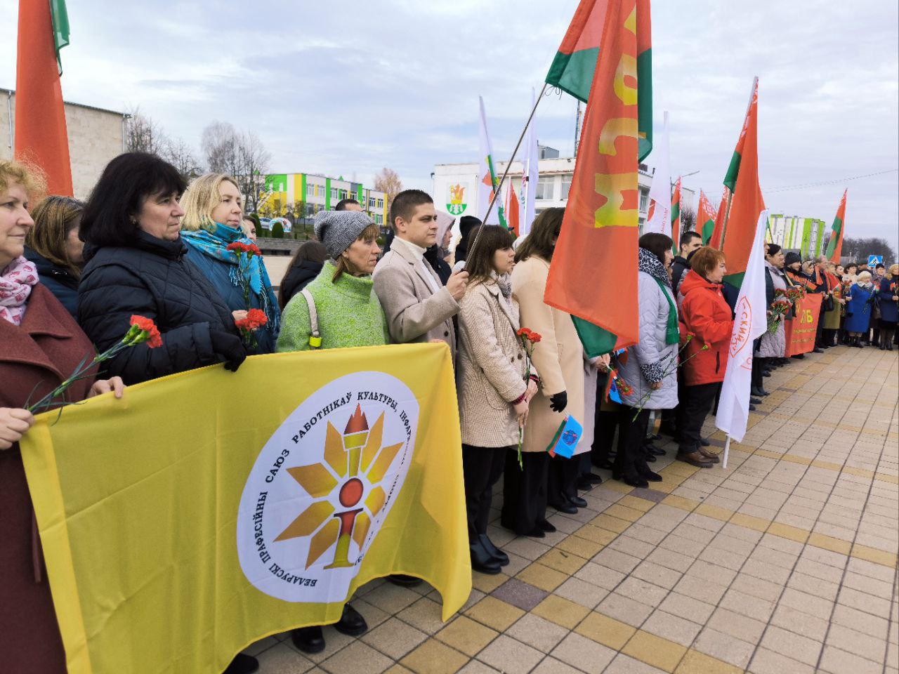 Участники митинга собрались на центральной площади около памятника Ленина. Участие приняли молодежь, представители партий и общественных объединений, трудовых коллективов, в том числе и сотрудники ГУК "Березинская центральная районная библиотека". Ведущий на мероприятии была заведующий детско-юношеского сектора районной библиотеки Анжелика Осадчая. Всех присутствующих поздравил председатель Совета депутатов Владимир Трухан. С ответственным словом выступил один из старейших членов Березинской районной организации Коммунистической партии Беларуси