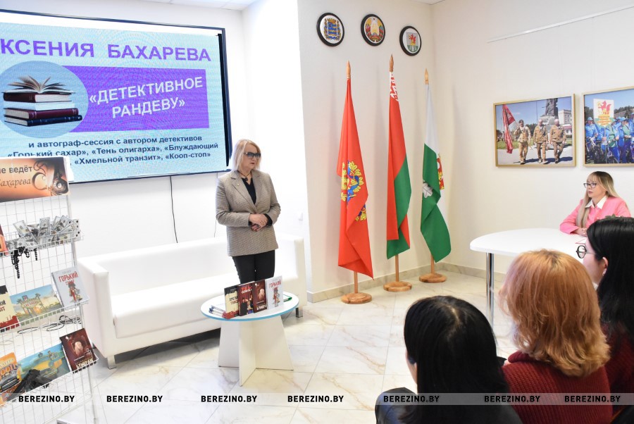 Сегодня в Березинской районной центральной библиотеке состоялась творческая встреча с Ксенией Бахаревой - членом Союза писателей Беларуси, сценаристом, продюсером, создателем и телеведущей передачи «ЗонаХ».