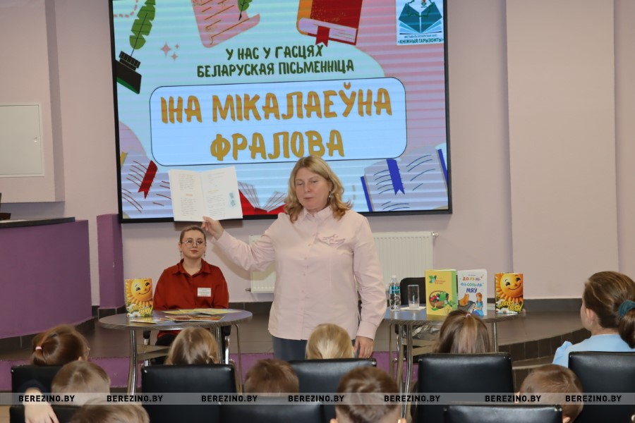 А вось дзіцячая пісьменніца, настаўніца па адукацыі, кіраўнік сталічных студый юных літаратараў Іна Фралова парадавала малодшых школьнікаў сваімі вершамі і сюжэтамі цікавых апавяданняў, пазнаёміла дзетак са сваімі маляўніча аформленымі выданнямі і адказала на пытанні зацікаўленых юных чытачоў. У знак сяброўства пісьменніца пакінула аўтографы на падораных выданнях.