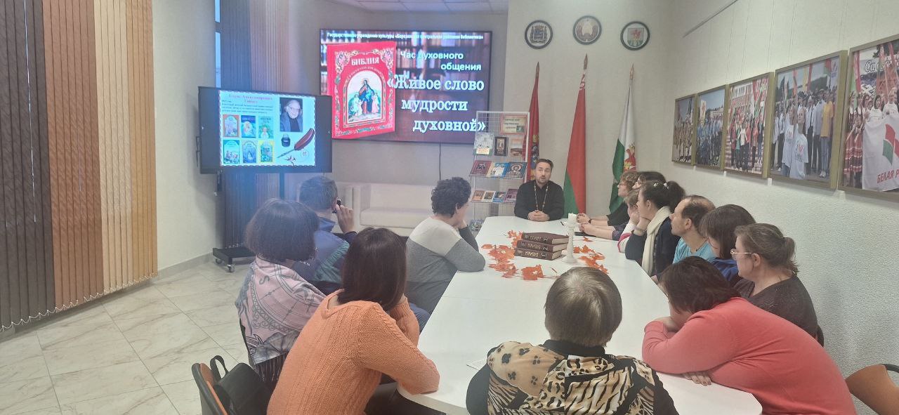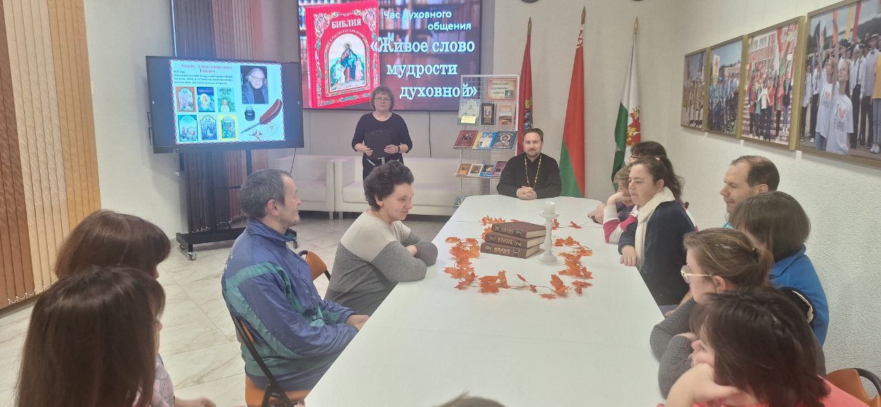 Сегодня в ГУК «Березинская центральная районная библиотека» для участников совместного проекта ТЦСОН и библиотеки «Чудесный мир книги» прошёл час духовного общения «Живое слово мудрости духовной». Роль печатного слова в жизни каждого человека очень велика. Часто оно оставляет неизгладимый след в душе. Воспитывает добрые чувства и побуждает к осознанию себя и своего места в этом мире — православная литература.