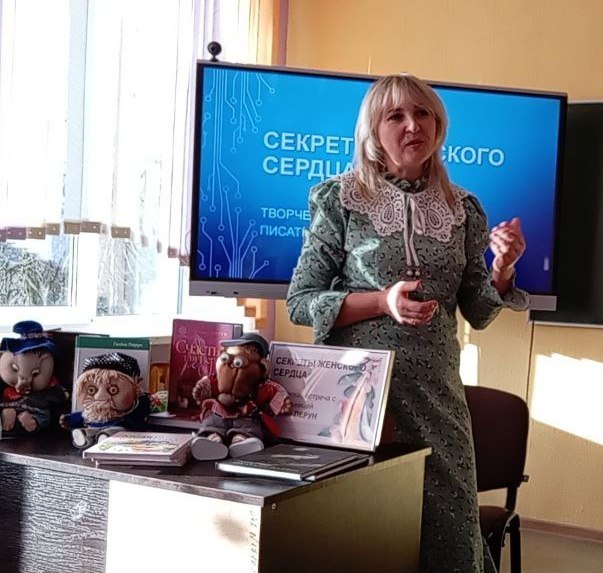 Беларуская пісьменніца расказала пра вытокі сваей творчасці, прататыпаў герояў, прэзентавала свой раман “Счастье для Веры”, адказала на шматлікія пытанні не толькі аб яе раманах для жанчын, але і аб дзіцячых кнігах, сярод якіх найбольш зацікавіў прысутных зборнік “Прыгоды сяброў і парады ад Усіхдапамагайкіна” у якіх даюцца карысныя парады аб аказанні першай дапамогі і паводзінах у небяспечных сітуацыях.