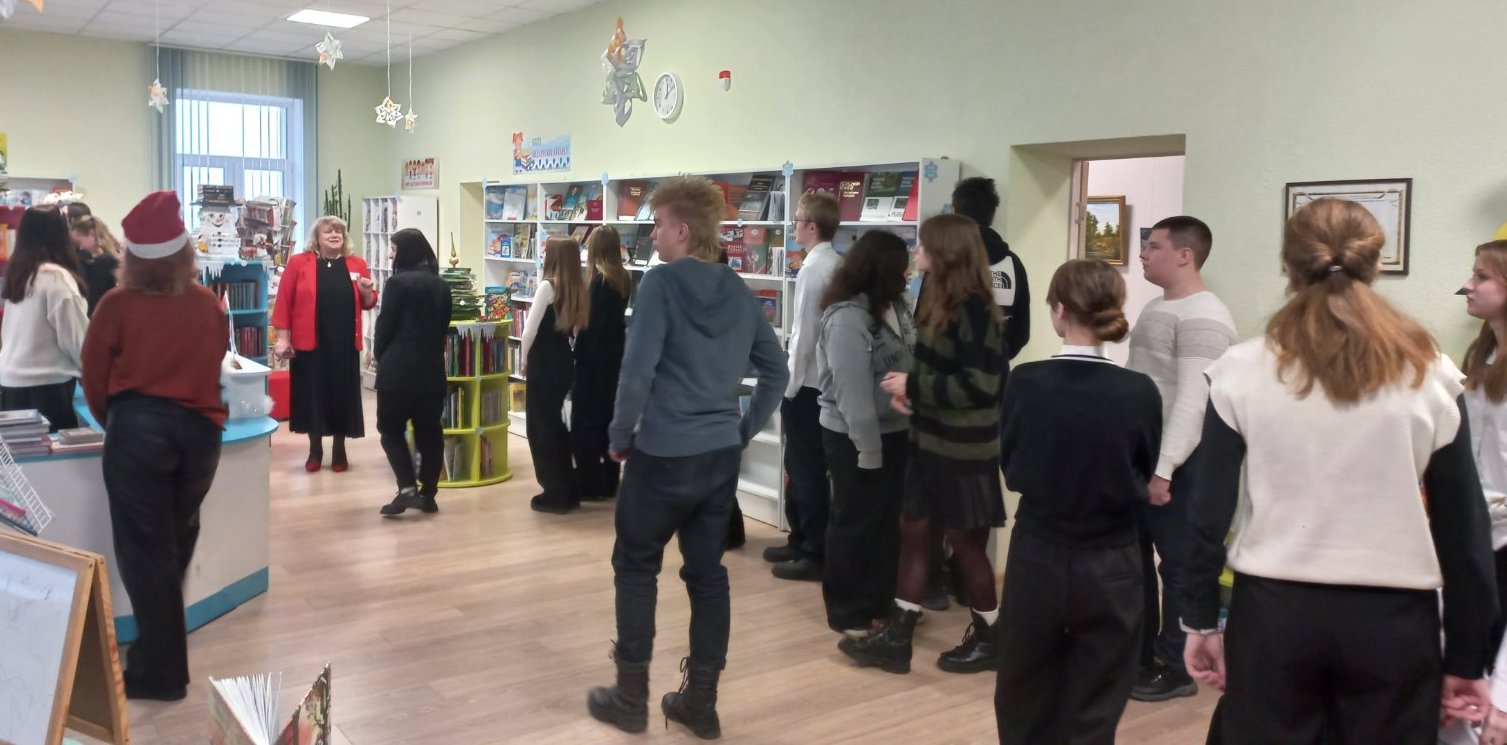 В здании ГУК "Березинская центральная районная библиотека" прошёл районный этап интеллектуально-развлекательной игры "Большая молодёжная игра" (Молодёжный КВИЗ), организованный общественным объединением "Белорусский республиканский союз молодёжи" среди команд всех школ Березинского района. В соревновании встретились 13 команд, каждая из которых показала смекалку, командный дух и отличное настроение. В перерыве между раундами участникам мероприятия была предложена экскурсия по предпраздничным залам и предновогодним выставочным формам библиотеки с презентацией книг на зимнюю тематику. Самым любопытным была представлена возможность заглянуть в книгохранилище. У всех особый интерес вызвала книга-альбом "Березинский район: Прошлое. Настоящее. Будущее", изданная сотрудниками библиотеки. И конечно же всех поздравили библиотечные Дедом Мороз и Снегурочка с предстоящими праздниками и пожеланиями исполнения желаний.
