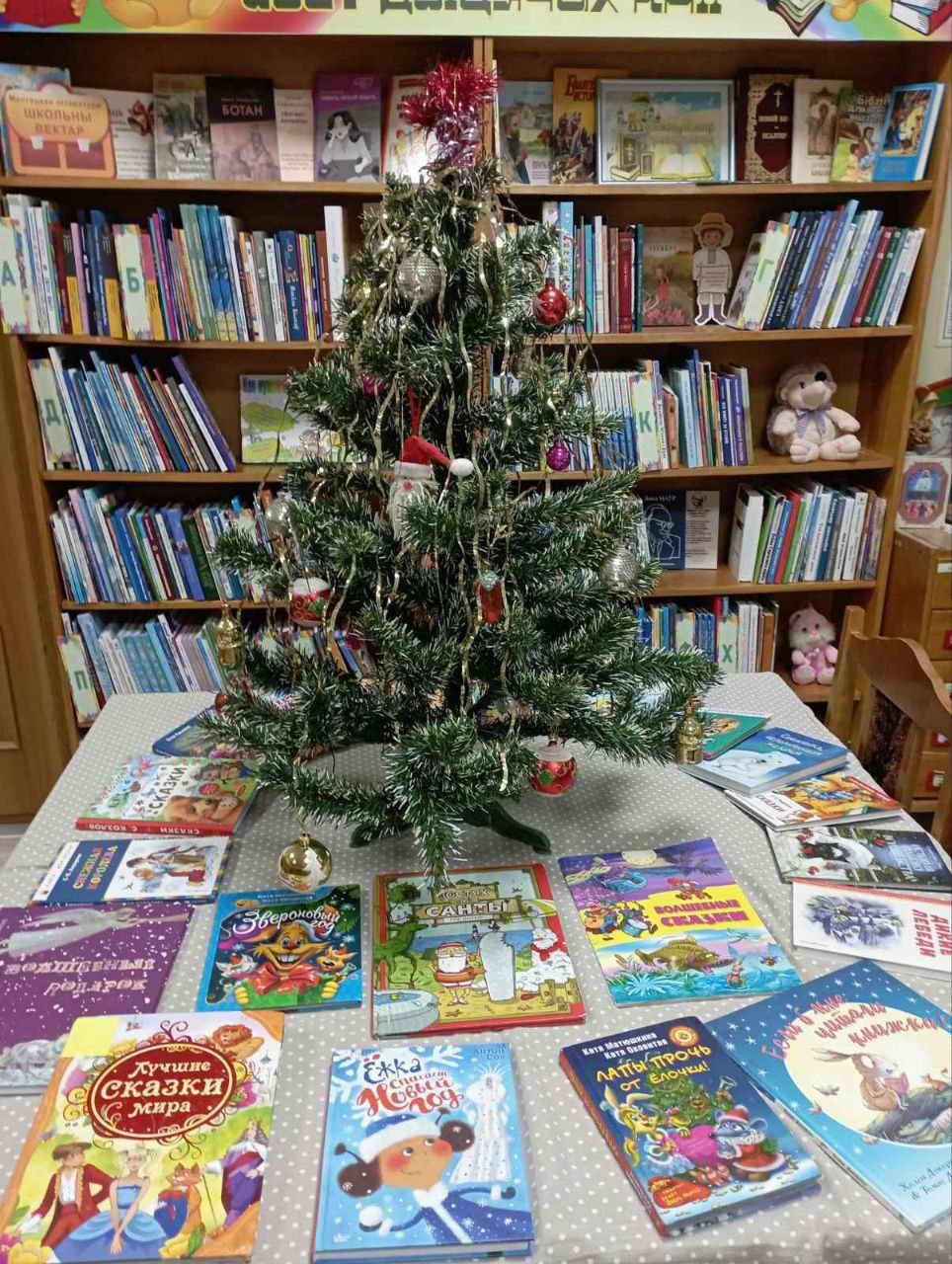 Далее состоялся просмотр новогоднего мультфильма «Чебурашка: секрет праздника». В завершение мероприятия на книжной выставке «Сказки водят хоровод» дети познакомились с «зимними» сказками, которые они ещё не читали, и выбрали понравившиеся книги для прочтения на каникулах.
