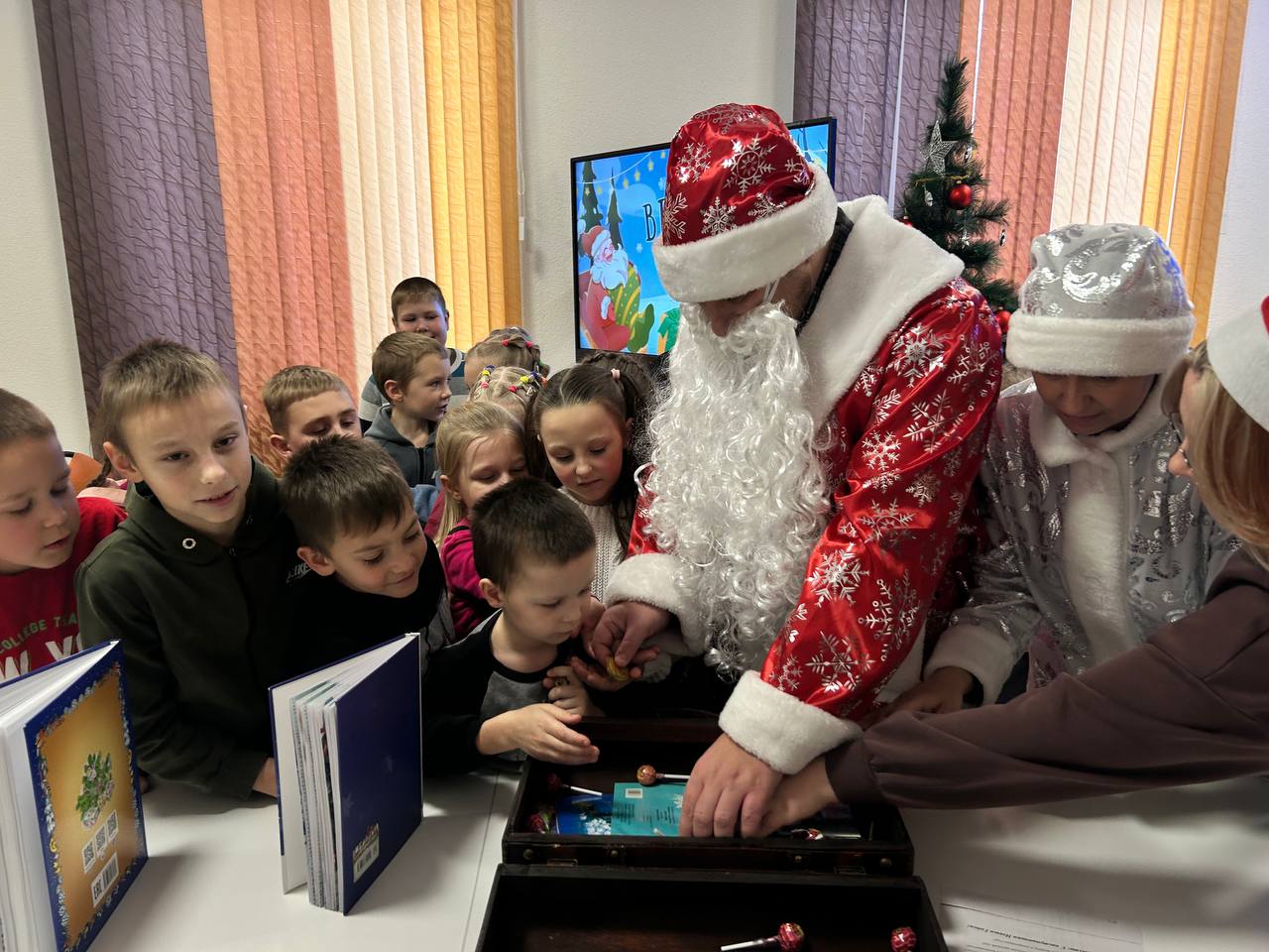 В конце ребята смогли повидаться с дедушкой Морозом и Снегурочкой, с которыми они зажгли елочку, отворяя двери волшебству и удачи в этом Новом Году.