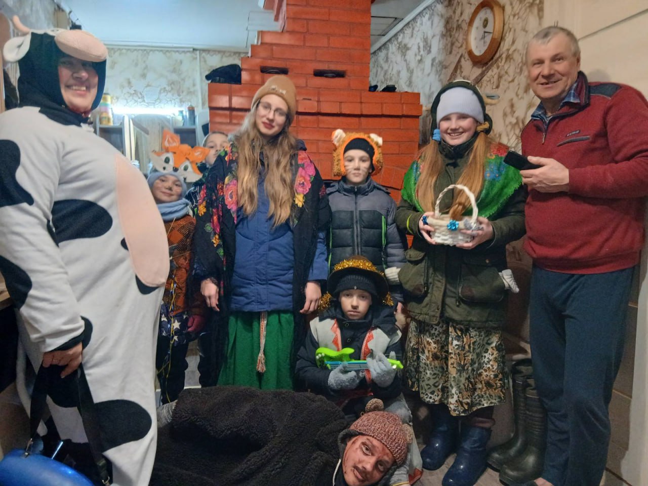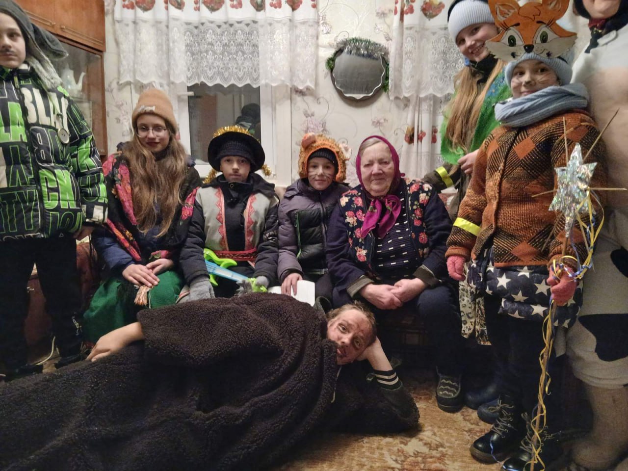 Пад каляднай зоркай дабрыні і духоўнасц У межах калядна-навагодняга тыдня “Пад каляднай зоркай дабрыні і духоўнасці” у канун старога новага года ў Багушэвіцкай СІБК прайшла літаратурна-абрадавая праграма “Калядныя пажаданні” для жыхароў аграгарадка. Маленькія калядоўшчыкі падрыхтавалі невялікае прадстаўленне па матывах аўтэнтычных беларускіх калядных спеваў, з якім паведалі хаты адзінока пражываючых сталых людзей, пенсіянераў, сваіх родных і сяброў. Гаспадары з радасцю сустракалі нашых валачобнікаў: Козачку, Цыгана з Цыганкай, Мядзведзя, Дзеда, Бабу, Коціка, Ліску, Карову і шчыра дзякавалі іх за візіт
