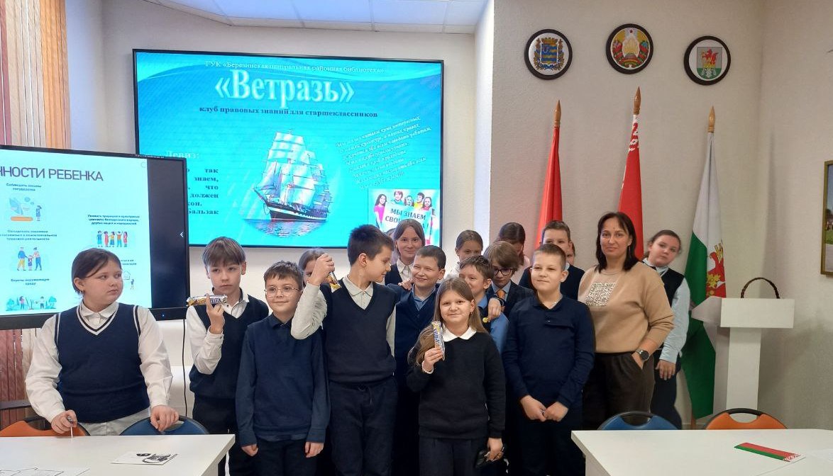 В ГУК «Березинская центральная районная библиотека» прошло заседание клуба правовых знаний «Ветразь». Для членов клубного формирования - учащихся Березинской гимназии был представлен тематический час «Права и обязанности школьника». Сегодня ребята постарались вспомнить и закрепить знания, а может кто-то и приобрёл знания о своих правах и обязанностях. А помогло в этом игра «Подросток и закон» и анимационный ролик «Права детей в Республике Беларусь». Ребята активно разбирали правовые вопросы и правильно на них отвечали. Подводя итоги мероприятия, если мы знаем права и выполняем обязанности, то правильно выстраиваем свою жизнь, ограничиваем себя от опасности и избегаем неприятных ситуаций.