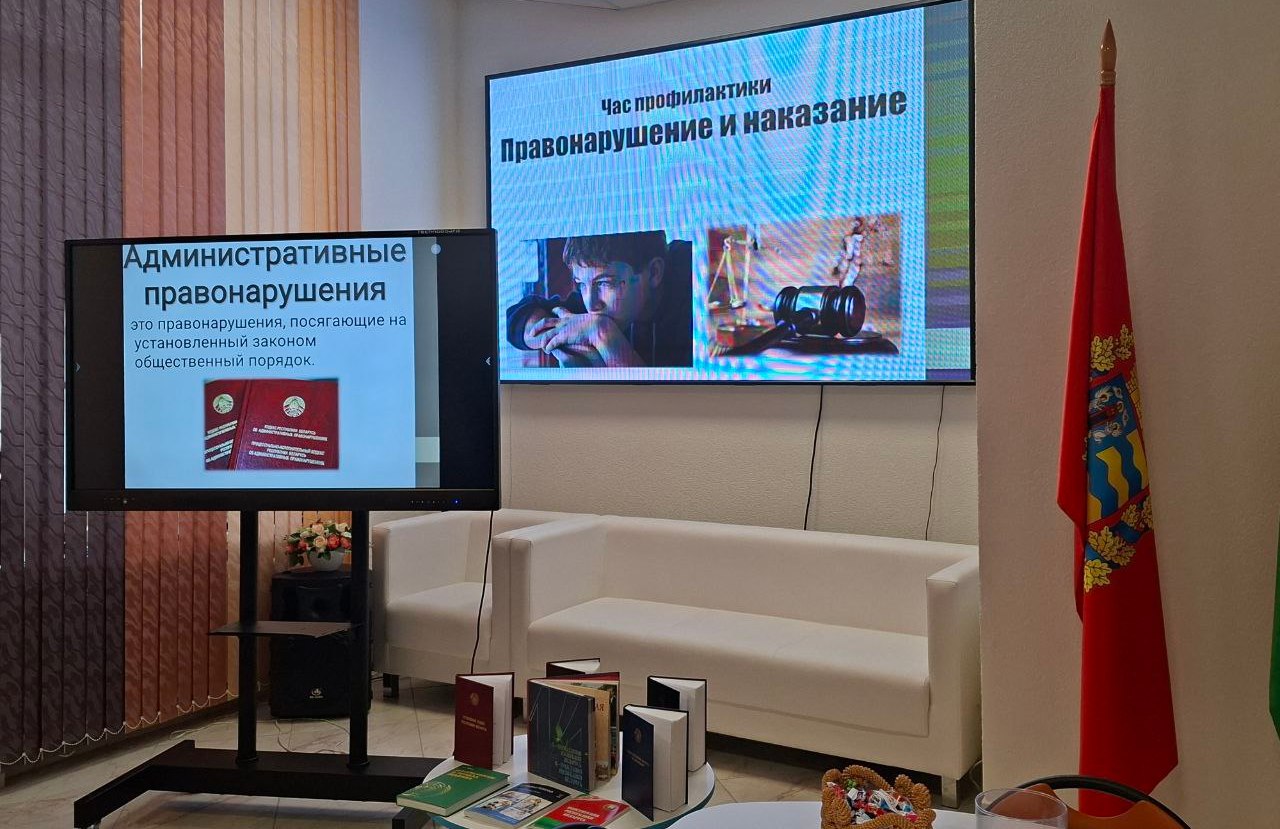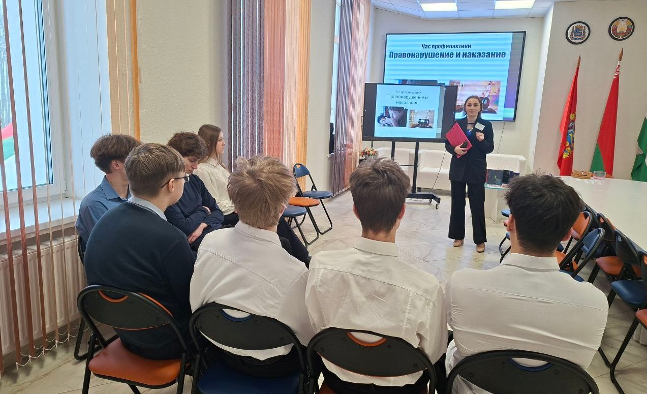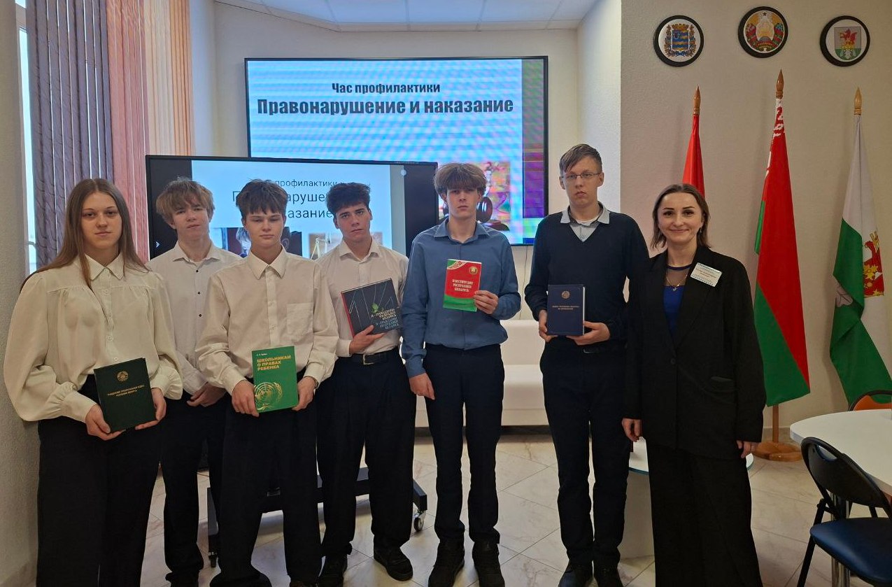 В ГУК «Березинская центральная районная библиотека» прошел час профилактики «Правонарушения и наказание» для старшеклассников СШ № 2 г. Березино. Актуально выбранная тема помогла донести учащимся, что все совершенные противоправные деяния ведут к тяжелым и трудно исправимым последствиям. Учащиеся пришли к выводу, что именно чувство безнаказанности, подтверждённое низкой социальной зрелостью, пренебрежение нормами закона и нежелание правильно организовать своё свободное время толкает несовершеннолетних к совершению преступлений. Библиотекарь зачитала подросткам статистику по преступности прошлого года в Березинском районе, рассказала, что такое правонарушения и преступления, познакомила с Конституцией Республики Беларусь. Так же ребята отметили, что очень важно родителям не быть равнодушными к внутреннему миру несовершеннолетнего. В заключении просмотрели фильм о преступлениях среди несовершеннолетних в Республике Беларусь .