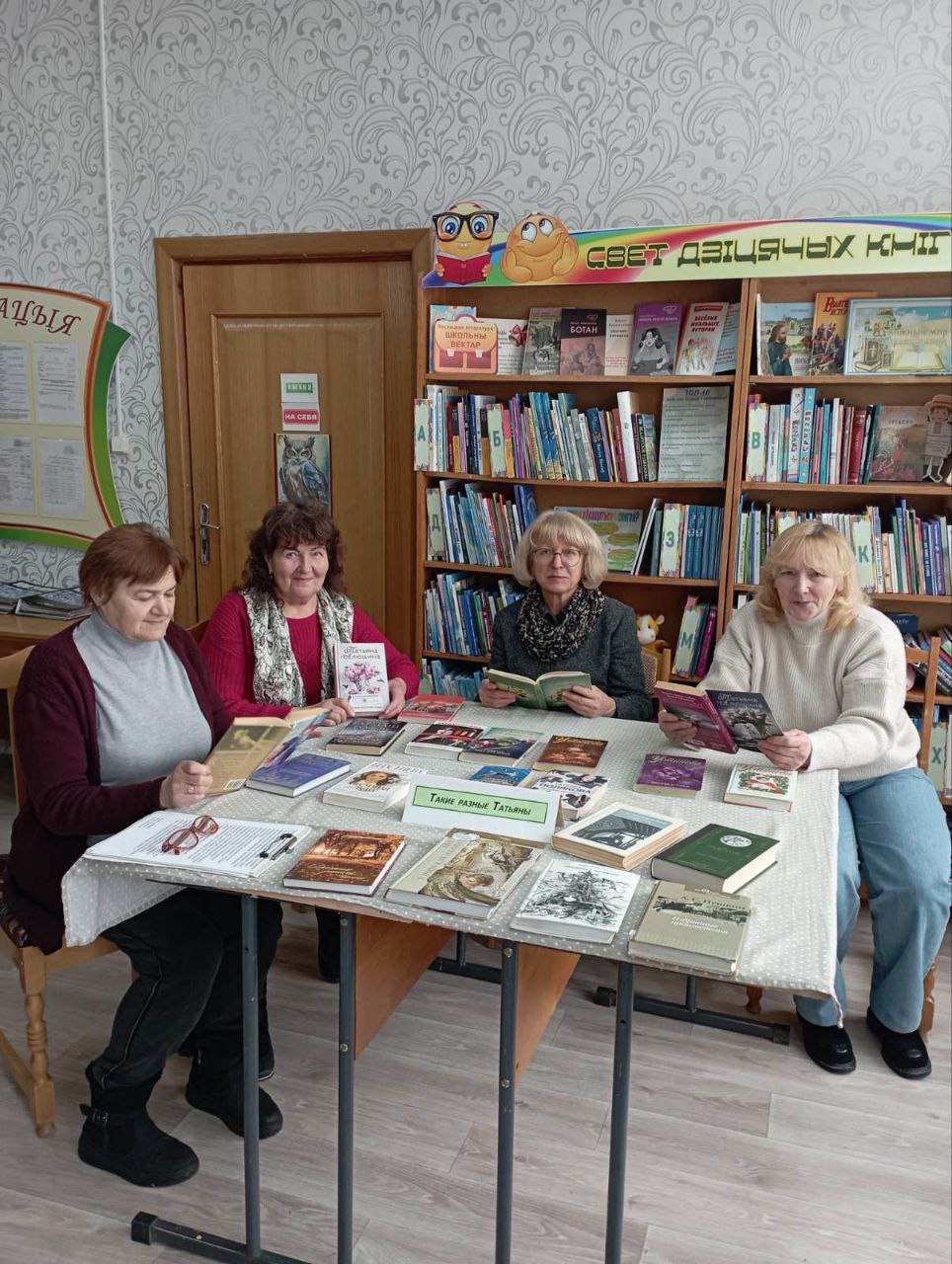 Погостскоя сельская интегрированная библиотеке ГУК «Березинская центральная районная библиотека» совместно с Погостским сельским домом культуры провели мероприятие «Такие разные Татьяны». К мероприятию была оформлена литературная выставка, где широко были представлены произведения Татьяны Алюшиной, Татьяны Гармаш-Роффе, Татьяны Устиновой, Татьяны Поляковой, Татьяны Успенской, а также белорусских писательниц Татьяны Мушинской, Татьяны Дубовской, Татьяны Будович-Барадуля. Представлены были произведения классиков, героиня которых «…звалась Татьяной»: А.С. Пушкин «Евгений Онегин, Ф.М. Достоевский «Подросток», Л.Н. Толстой «Анна Каренина».