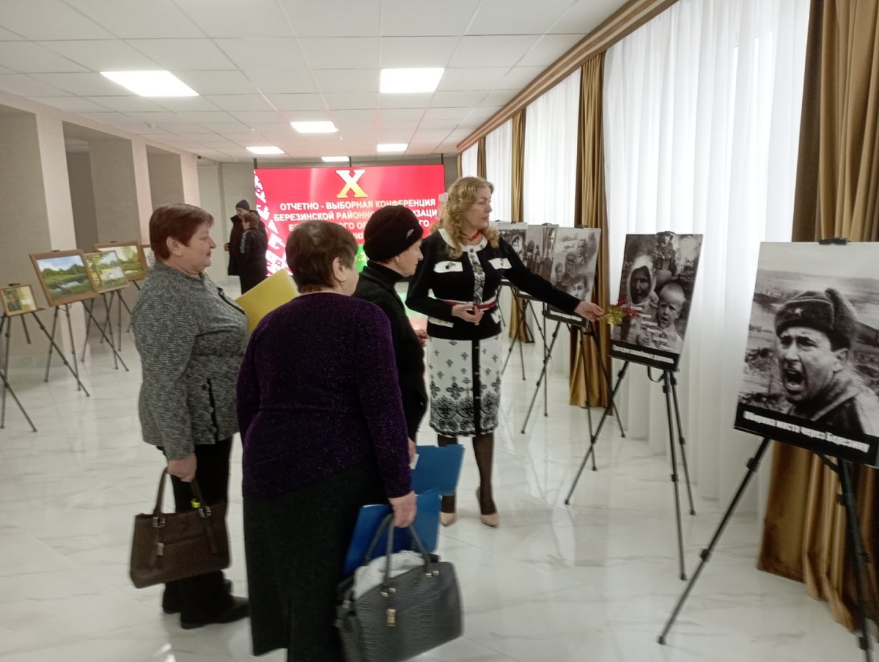Участникам X отчётно – выборной конференции Березинской районной организации Белорусского общественного объедения ветеранов сотрудники Березинской районной библиотеки представили эксклюзивную панораму экспозиций краеведческо – информационного плана. Реквием – выставка «Глаза войны» - дань героизму и несгибаемости военного поколения. Сочетание впечатляющих снимков, подготовленных по архивным материалам, с информационным изложением деталей и фактов жертв и героев войны позволило уважаемым горожанам воочию увидеть трагедию и подвиг войны в единой мозаике Великой Победы. Обвинением фашизму прозвучали разделы экспозиции «Трагедия сожжённых деревень», «Расправа над подпольщиками», «Молодость под знаком рабства», «Вместо детства – война». Свидетельством мужества земляков с военной биографией стали факты героической обороны моста через Березину, героизм детей войны, женщин – фронтовичек, отважных лётчиков, участников штурма Кёнигсберга, операции по спасению Берлинского метро и взятию Рейхстага.