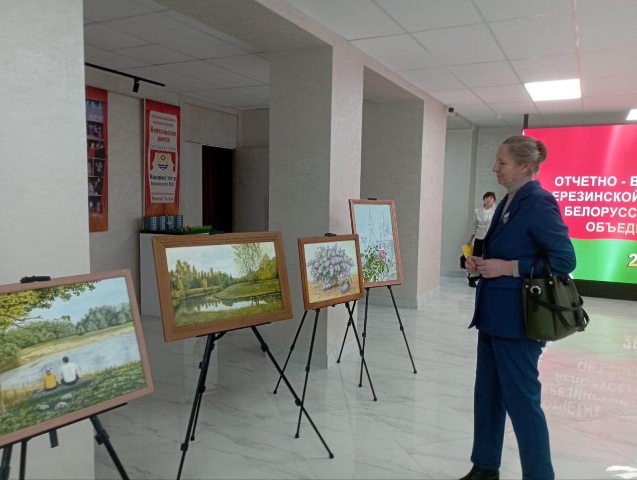 Яркие краски эмоций подарили участникам отчётно – выборной конференции представленные сотрудниками Березинской районной библиотеки в фойе РЦК экспозиции картин талантливых землячек Любови Забаронок и Аллы Семеняко под общим лейтмотивом Года белорусской женщины – 2026 «Женщина – синоним творчества». Увлечение живописью стало для них потребностью высказаться через творчество, показать восприятие окружающего мира через приму своего творческого Я. Каждая картина уроженок Березинщины - яркое свидетельство того, что наша земля богата талантами, которые составляют гордость края.