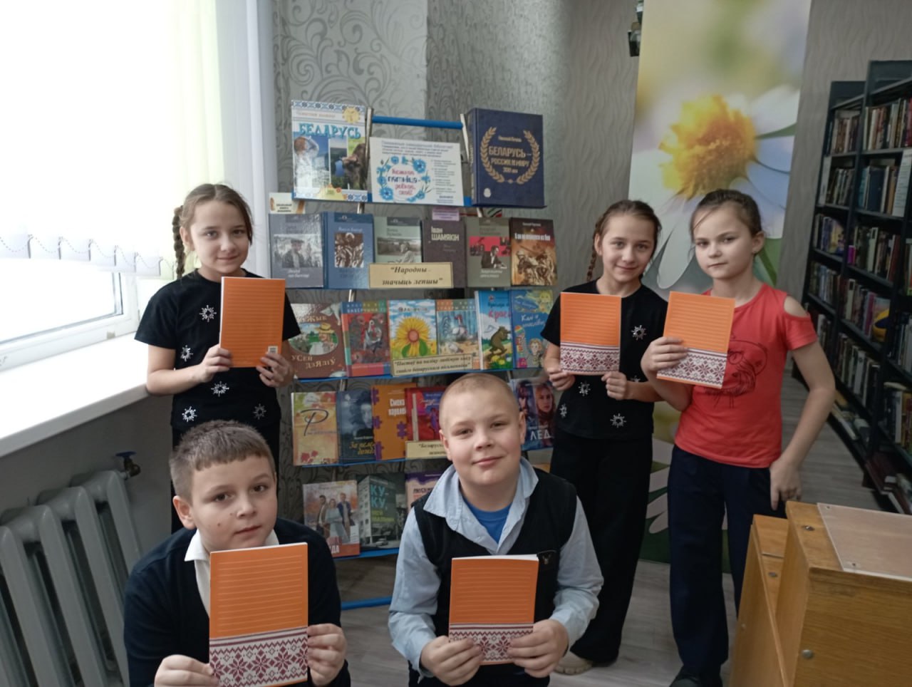 - з вучнямі пачатковых класаў адбылася імправізаваная выстава-рэспект “Пастаў на паліцу любімую кнігу свайго беларускага пісьменніка”;