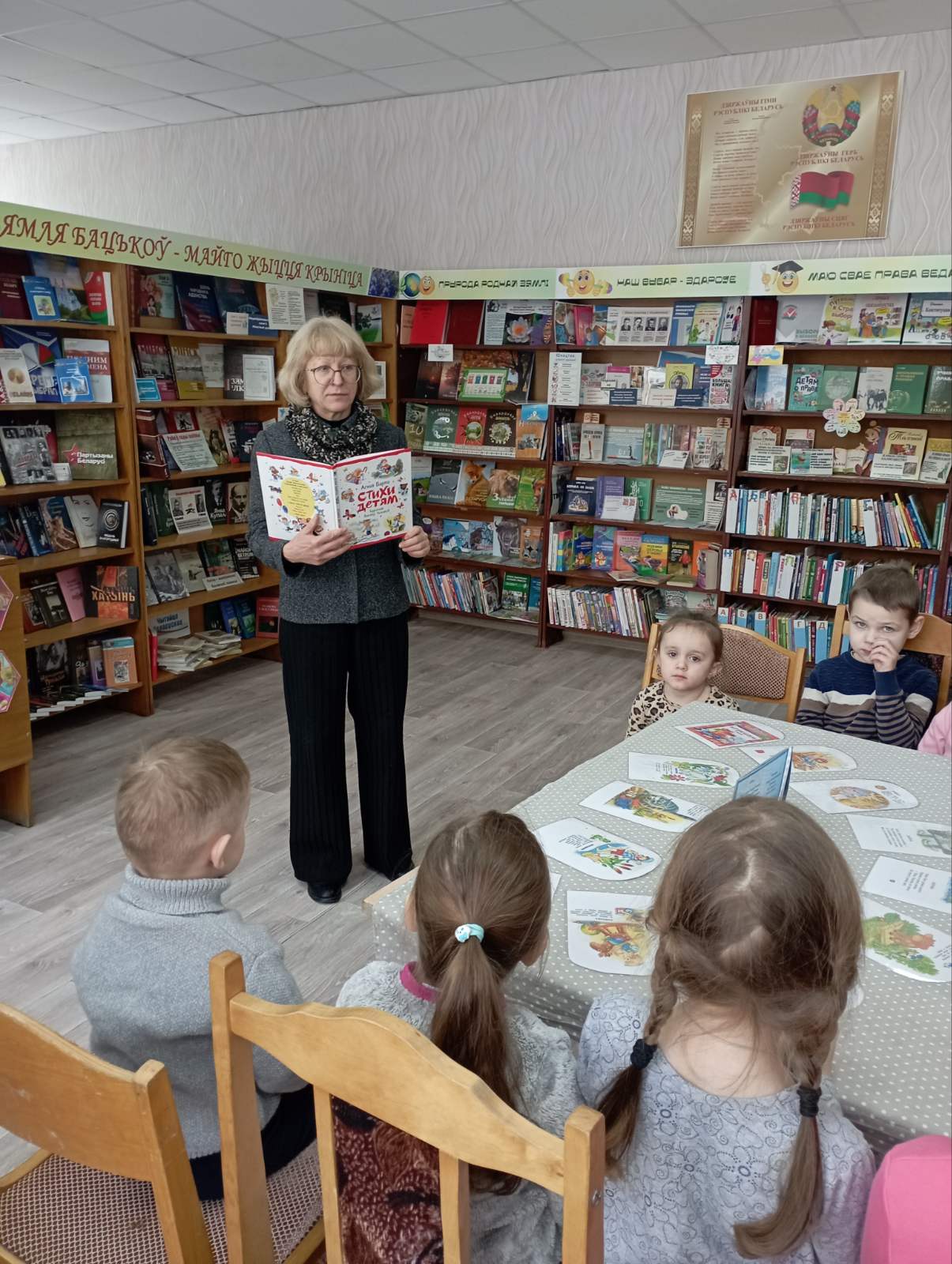В рамках акции «Книжная няня в детском саду», приуроченной к 120-летию русской писательницы А. Барто и 90-летию издания сборника её стихов «Игрушки» сотрудником Погостской сельской интегрированной библиотеки был представлен воспитанникам детского сада театр одного стихотворения «Любимые с детства строчки». После краткого ознакомления с творчеством любимой детской писательницы Агнии Барто, ребятам предложили устроить мини-театр и самим стать актерами: изобразить игрушки, инсценировать полюбившееся стихотворение. Затем ребята с удовольствием посмотрели видео для малышей «Мульт-песенки на стихи Агнии Барто», разгадывали загадки, отвечали на вопросы викторины. Мероприятие прошло весело, интересно с активным участием ребят.