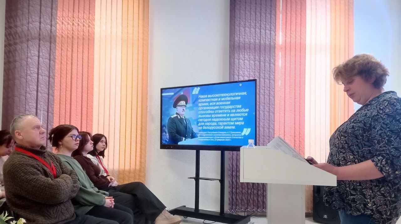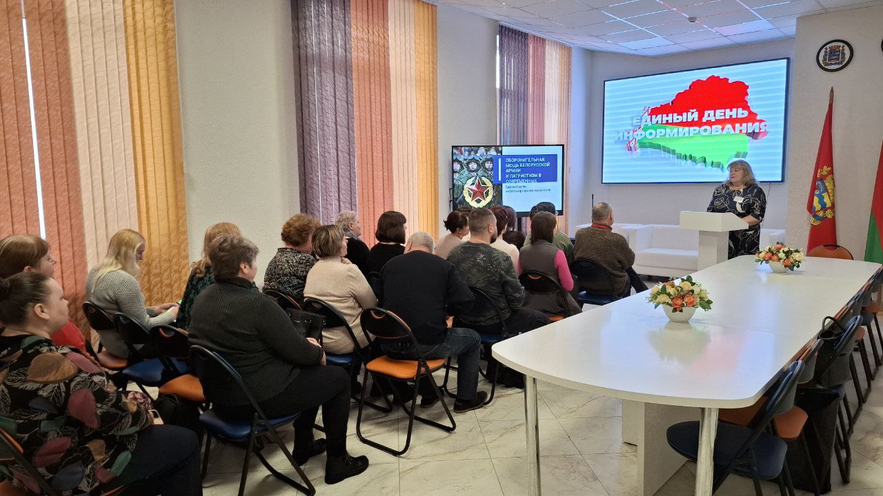В преддверии Дня защитников Отечества на Едином дне информирования в коллективе ГУК "Березинская центральная районная библиотека" шла речь об особой роли Вооруженных Сил Республики Беларусь в системе обеспечения национальной безопасности нашей страны, а именно о защите от внешних и внутренних угроз.Было отмечено, что после избрания Президентом страны Александр Лукашенко предотвратил деградацию армии, начавшуюся с развалом СССР, определил стратегию по становлению и преобразованию армии суверенной и независимой Беларуси, принял меры по сохранению материально-технической базы, проведению в последующем модернизации и созданию мобильных, боеспособных Вооруженных Сил. Под его руководством были определены перспективы развития до 2030 года, усилена региональная группировка войск и продолжает обеспечиваться военная безопасность. В условиях, когда напряженность вокруг Беларуси не спадает, а провокации со стороны отдельных соседей продолжаются, наличие сильной белорусской армии – гарант безопасности.