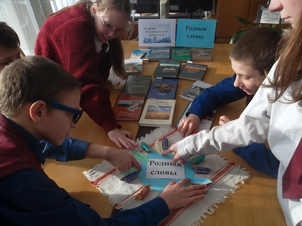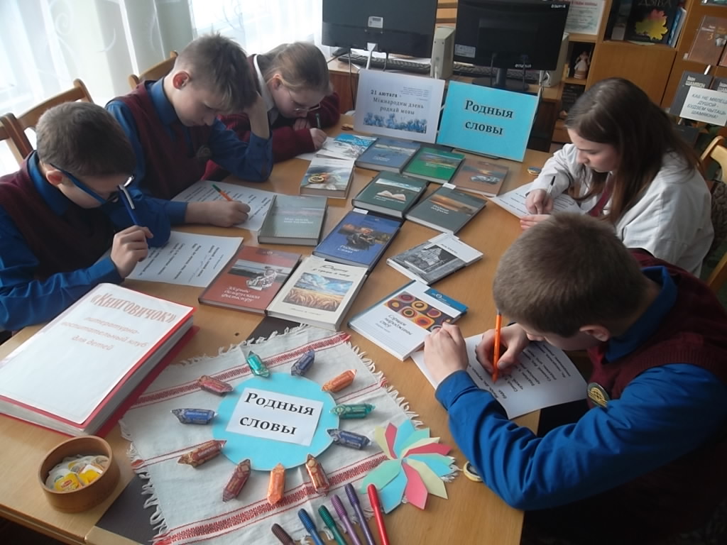 20 лютага у рамках акцыі “Кожная пятніца – роднае, сваё!” і да Міжнароднага дня роднай мовы (21.02.) у Ушанскай сельскай інтэграванай бібліятэкі ДУК “Бярэзінская цэнтральная раённая бібліятэка” з удзельнікамі літаратурна-пазнавальнага клуба “Кнігавічок” была праведзена літаратурная гульня “Родныя словы”. Дзеці выконвалі розныя заданні, такія як: “Разгадай загадкі-жарты”, “Збярыце прыказкі”, “Парад шарад”, “Заблытунчык”, “Перакладчыкі”, “Разгадай метаграмы”. Так сама дзецям было прапанавана назваць беларускія святы розных перыядаў года і ўзгадаць беларускія народныя песні. У час мерапрыемства школьнікі азнаёміліся з літаратурнымі зборнікамі твораў знакамітых пісьменнікаў, такімі як “Мая зямля, мая калыска”, “Мастацкае слова ў паэзіі”, “І сэрцам, і думамі”, “Родныя вобразы” Я. Коласа, “Роднае слова” Я. Купалы і інш.. Асабліва спадабалася дзецям гульня-рэклама “Далучыся да роднага” з прэзентацыяй зборнікаў “Родныя словы” і “Сэрцам роднага слова краніся” у саправаджэнні салодкага пачастунка ад фабрыкі “Камунарка” з лінейкай цукерак “Родныя словы”. Дзеці пісалі на лісточках прыгожыя беларускія словы і дапаўнялі імі кружок з цукерак, якімі пасля пачаставаліся.