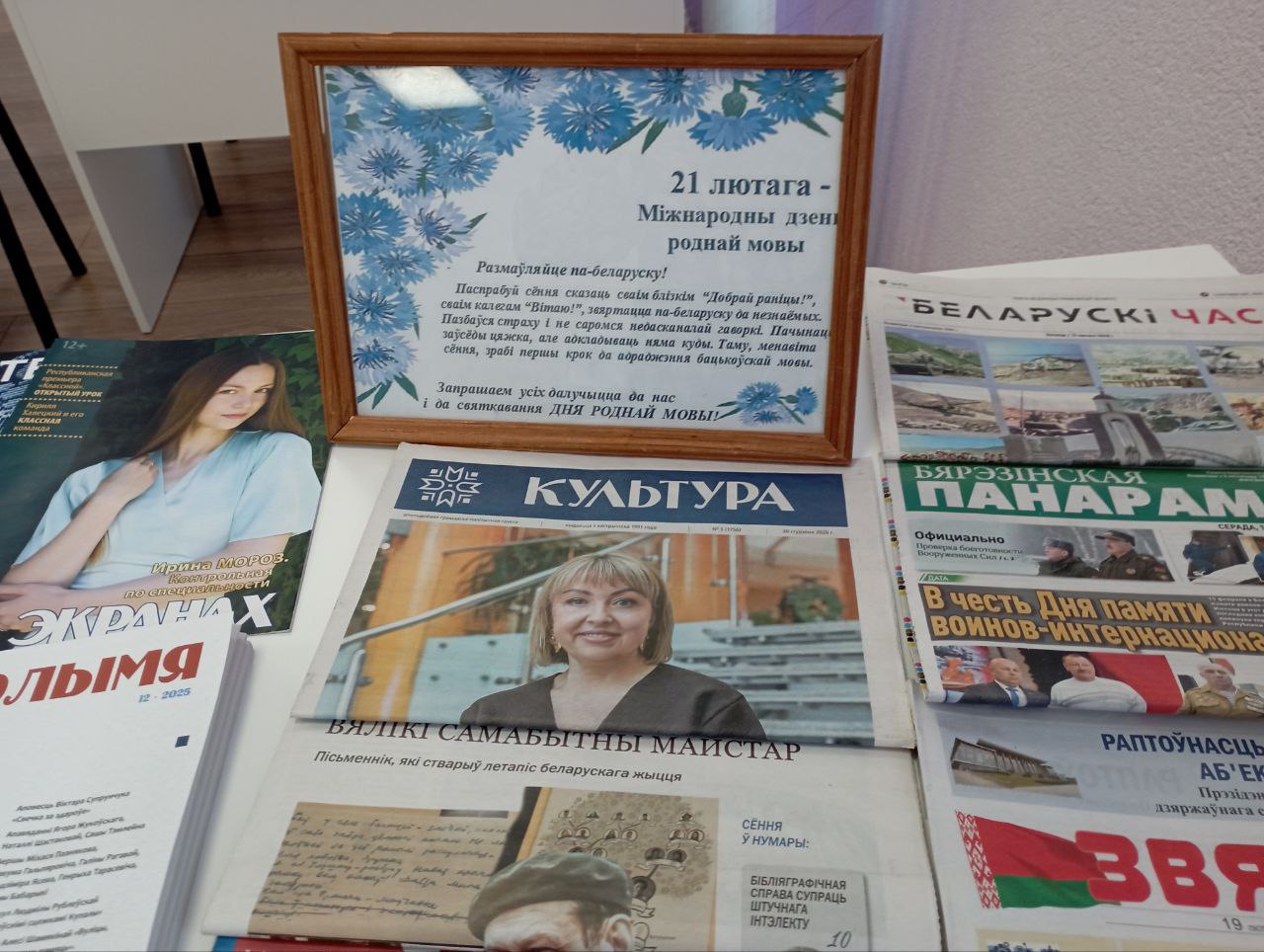 У рамках Міжнароднага дня роднай мовы ў чытальнай зале ДУК “Бярэзінская цэнтральная раённая бібліятэка” да ўвагі наведвальнікаў бібліятэкі і чытачоў быў прапанаваны прагляд беларускіх часопісаў і газет.