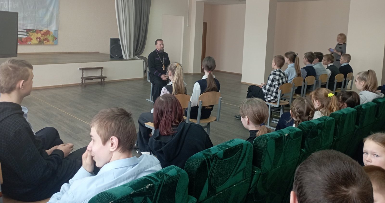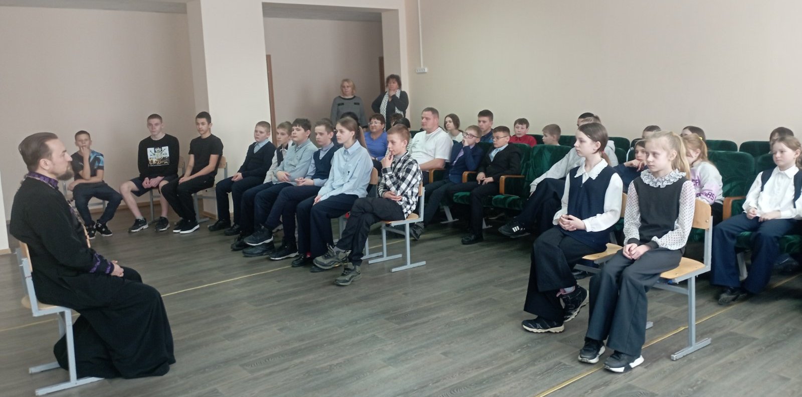 Учащиеся задавали вопросы, рассуждали о духовных вещах. В конце мероприятия священник пожелал Божьей помощи и успехов в учебе.