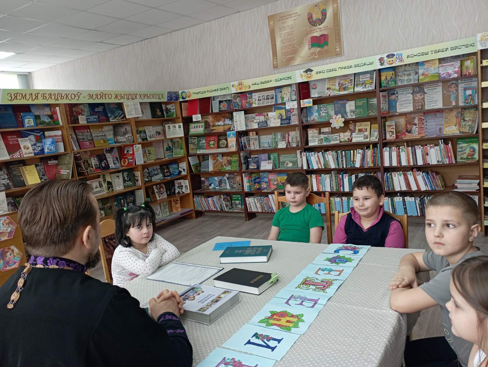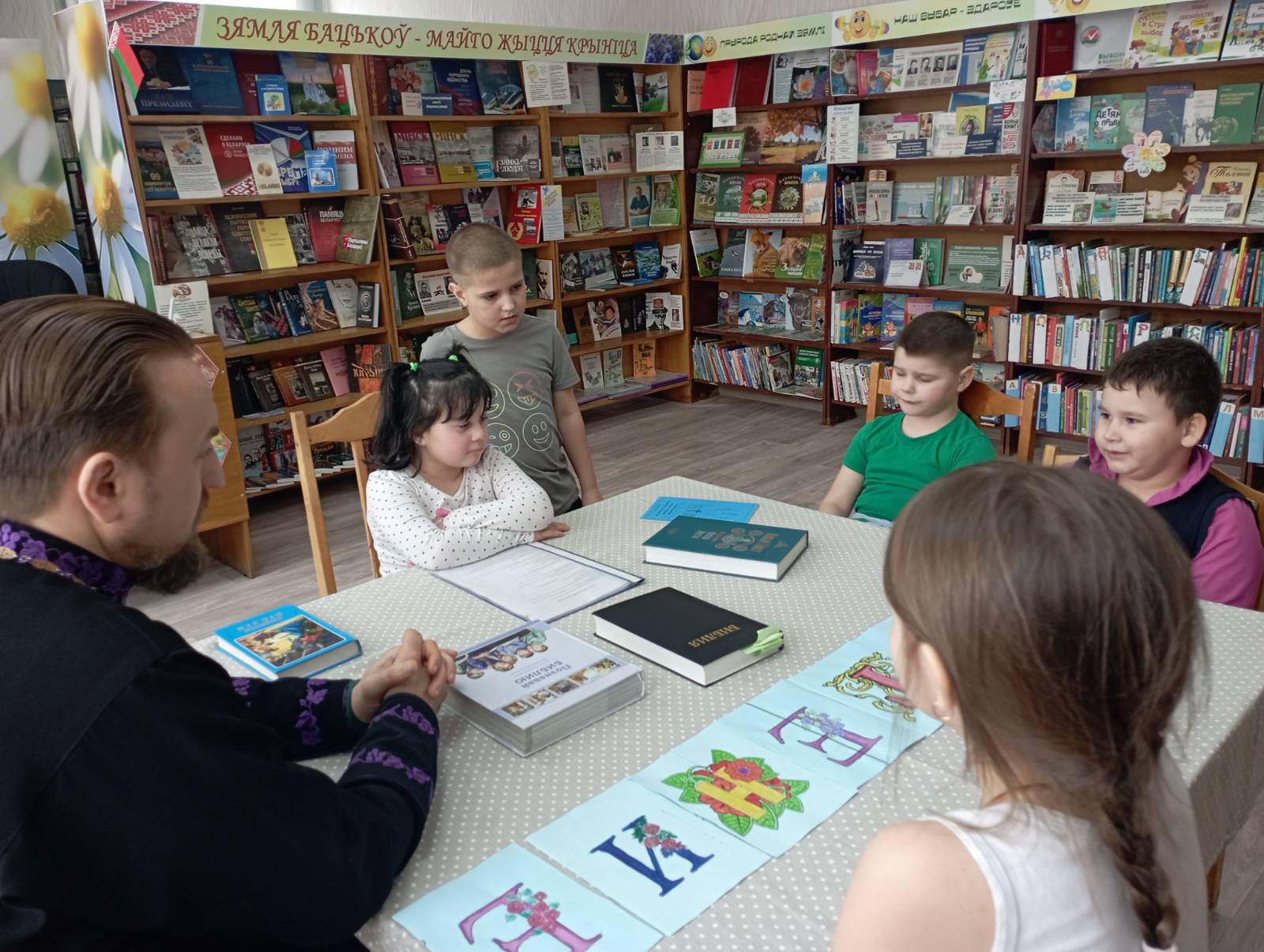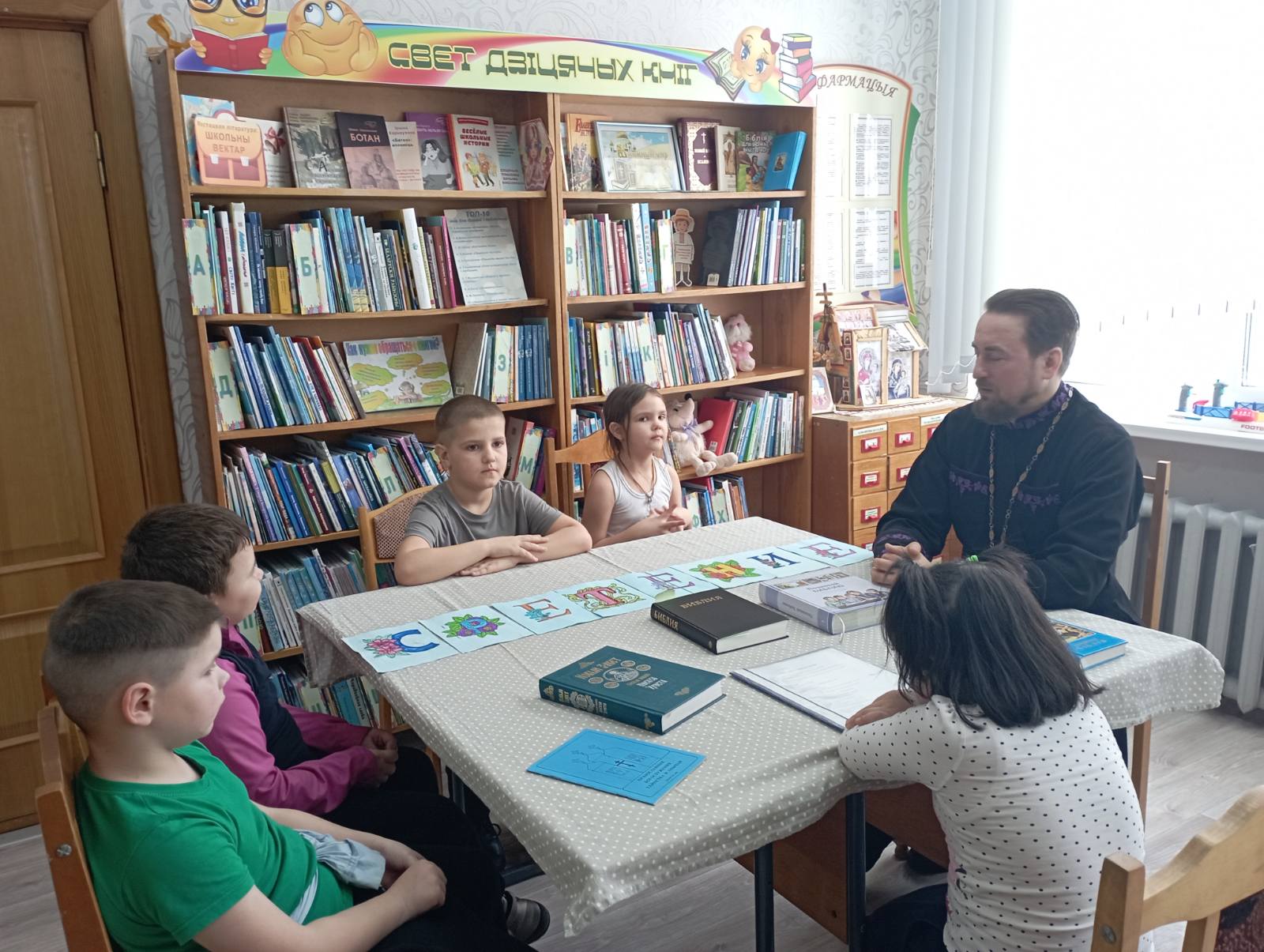 В Погостской сельской интегрированной библиотеке ГУК «Березинская центральная районная библиотека» состоялось очередное заседание любительского объединения по основам духовно-нравственной культуры «Колокольчик» «Сретение Господне». Занятие посетил настоятель храма Преображения Господня, священник Василий Васильков.