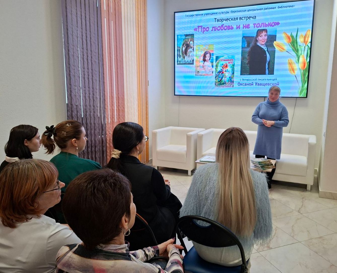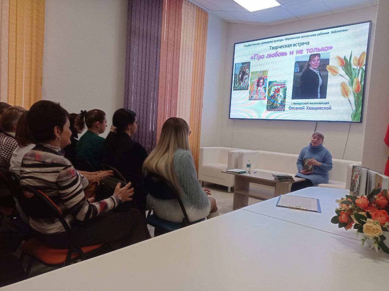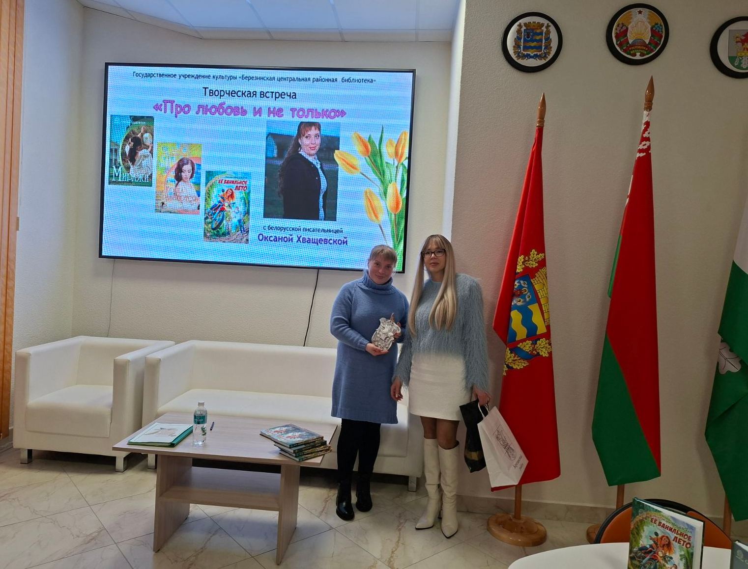 В рамках Клуба творческих встреч цикла «У нас у гасцях -пісьменнік» в актовом зале ГУК «Березинская центральная районная библиотека» прошла творческая встреча «Про любовь и не только» с уже известной, современной белорусской писательницей Оксаной Хващевской.
