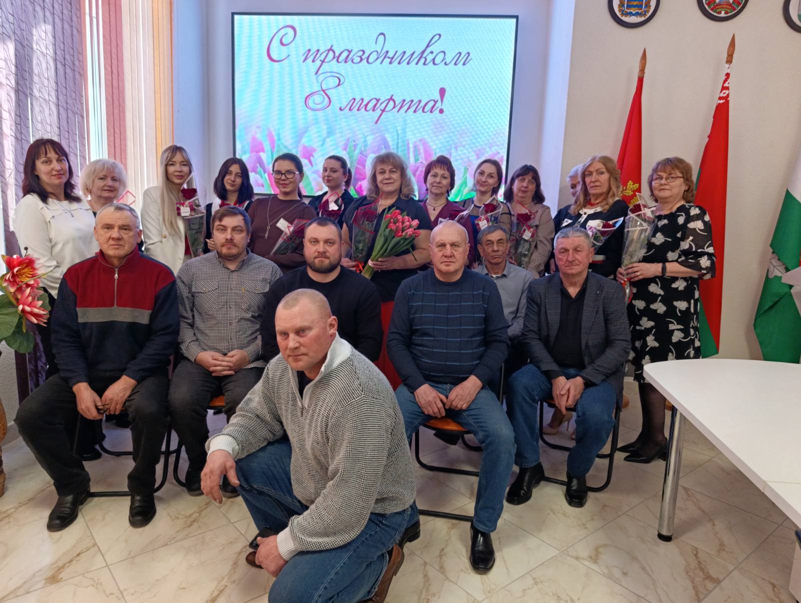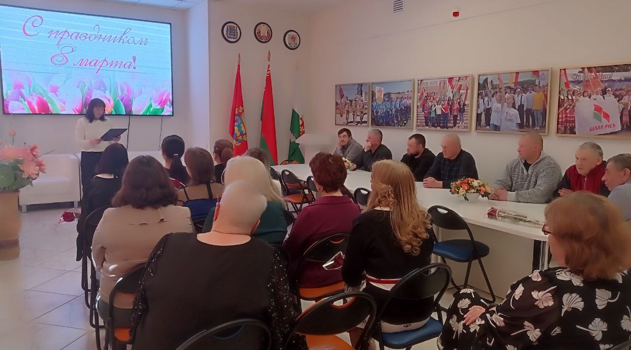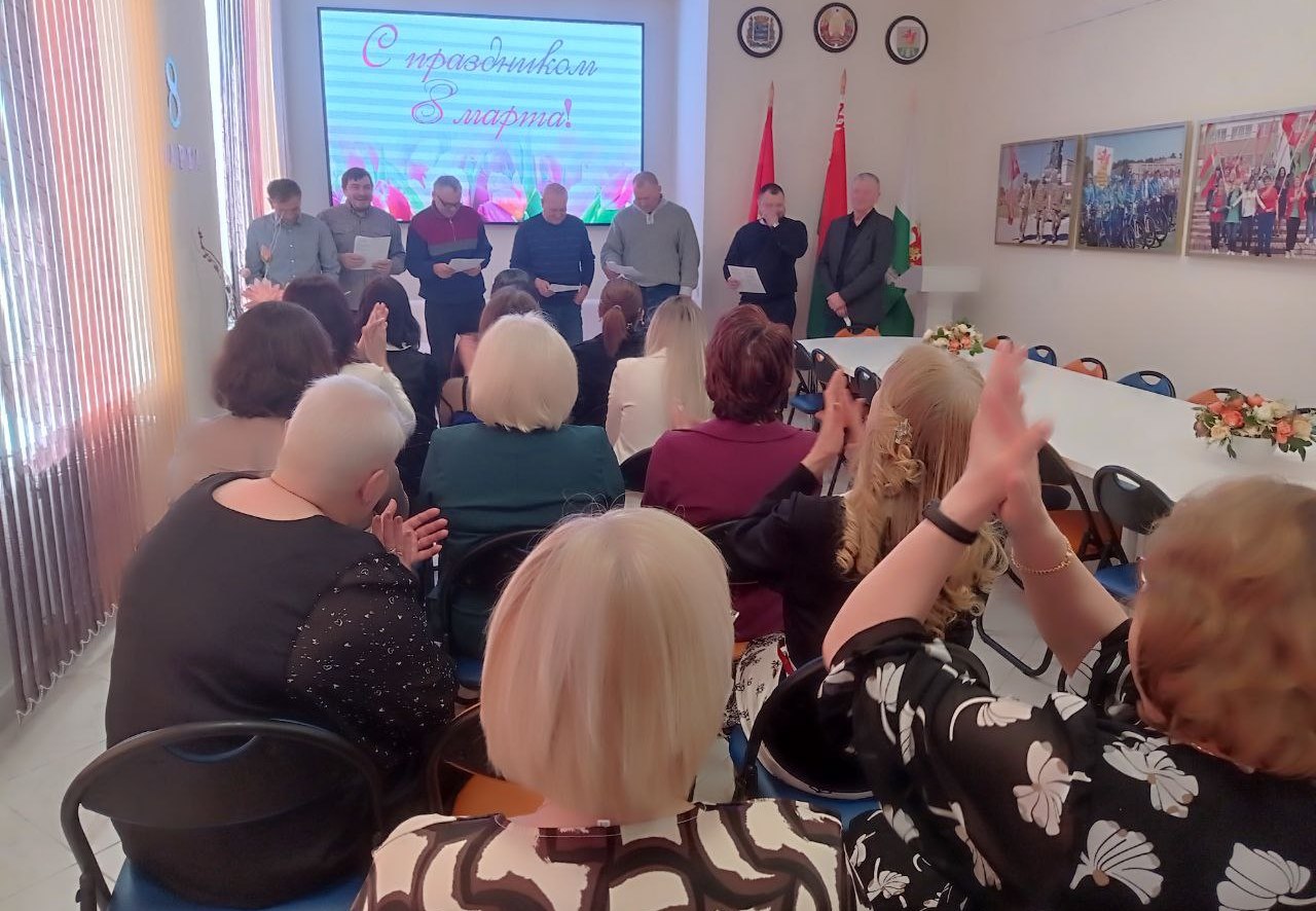 В канун светлого весеннего праздника – Дня женщин - боевая гвардия мужчин ГУК «Березинская центральная районная библиотека» поздравила прекрасную половину коллектива с этой замечательной датой календаря. Понятия ЖЕНЩИНА и ВЕСНА удачно рифмуются, отражая возвышенную сущность женского начала – символа жизни, носителя всего прекрасного в этом мире. Во время поздравления мужчины районной библиотеки не пожалели добрых слов, искренних пожеланий, виртуозных шуток и алых роз, привнося в весенний мартовский день особо торжественную ноту. А Владимир Керин в качестве шикарного подарка исполнил под гитару песню – посвящение женщинам – романтичным, влюблённым, любимым…