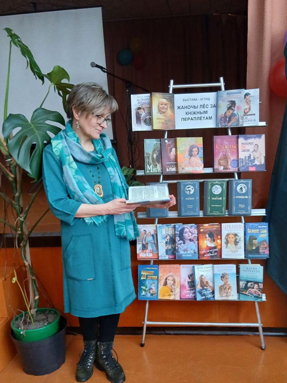 Працягнулася літаратурная пятніца прэзентацыяй выставы-агляда "Жаночы лёс за кніжным пераплётам". Лепшыя творы сусветнай і беларускай літаратуры, галоўнымі гераінямі якіх з’яўляюцца жанчыны, былі прапанаваны ўдзельніцам мерапрыемства. Вялікую цікавасць выклікалі не толькі новыя творы, але і прыгожа аформленыя новыя выданні з серыі “Лепшая міравая класіка”.