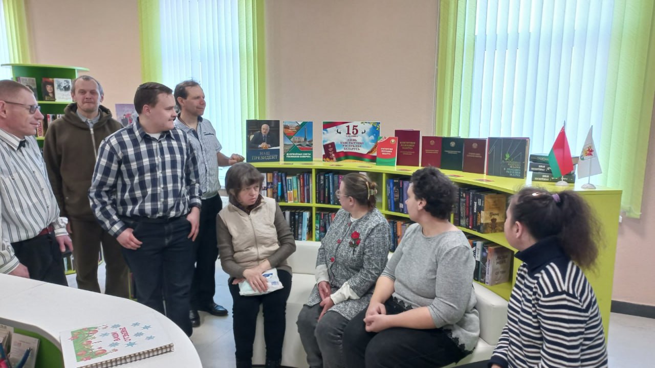 Ежемесячно ГУК «Березинскую центральную районную библиотеку» посещают участники совместного проекта ТЦСОН и библиотеки «Чудесный мир книги». Каждый раз для ребят проводятся новые интересные мероприятия. Библиотека поражает их своим особым оформительским стилем, комфортом и эстетикой залов. Сегодня для молодых людей была проведена экскурсия по отделу обслуживания и информирования, где они с большим интересом ознакомились с книжными выставками, в том числе и посвящённой Дню Конституции. Всегда встречи в библиотеке проходят на душевном подъёме и позитиве.