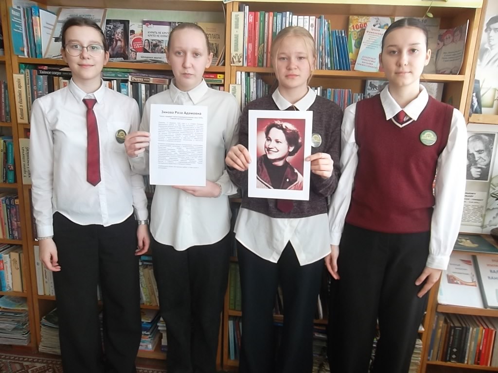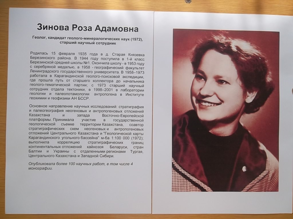 В Ушанской сельской интегрированной библиотеке ГУК «Березинская центральная районная библиотека» в рамках рейтинг-пятницы «Гонару прычына – беларуская жанчына” была проведена трибуна гордости “Жанчына са знакам якасці”. Библиотекарь ознакомила школьников с интересной биографией талантливой женщины-землячки Зиновой Розы Адамовны, геолога, кандидата геолого-минералогических наук, старшего научного сотрудника, родом из деревни Старая Князевка Березинского района. Основное направление её научных исследований – это стратиграфия и палеогеография неогеновых и антропогеновых отложений Казахстана и запада Восточно-Европейской платформы. За время своей трудовой деятельности эта женщина опубликовала более 100 научных работ, в том числе 4 монографии.