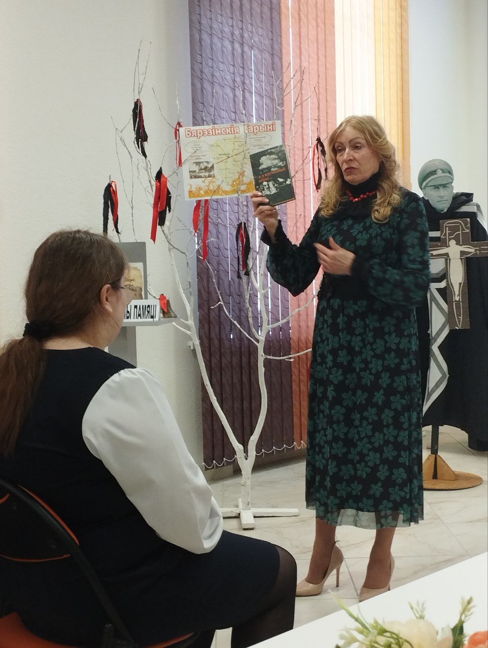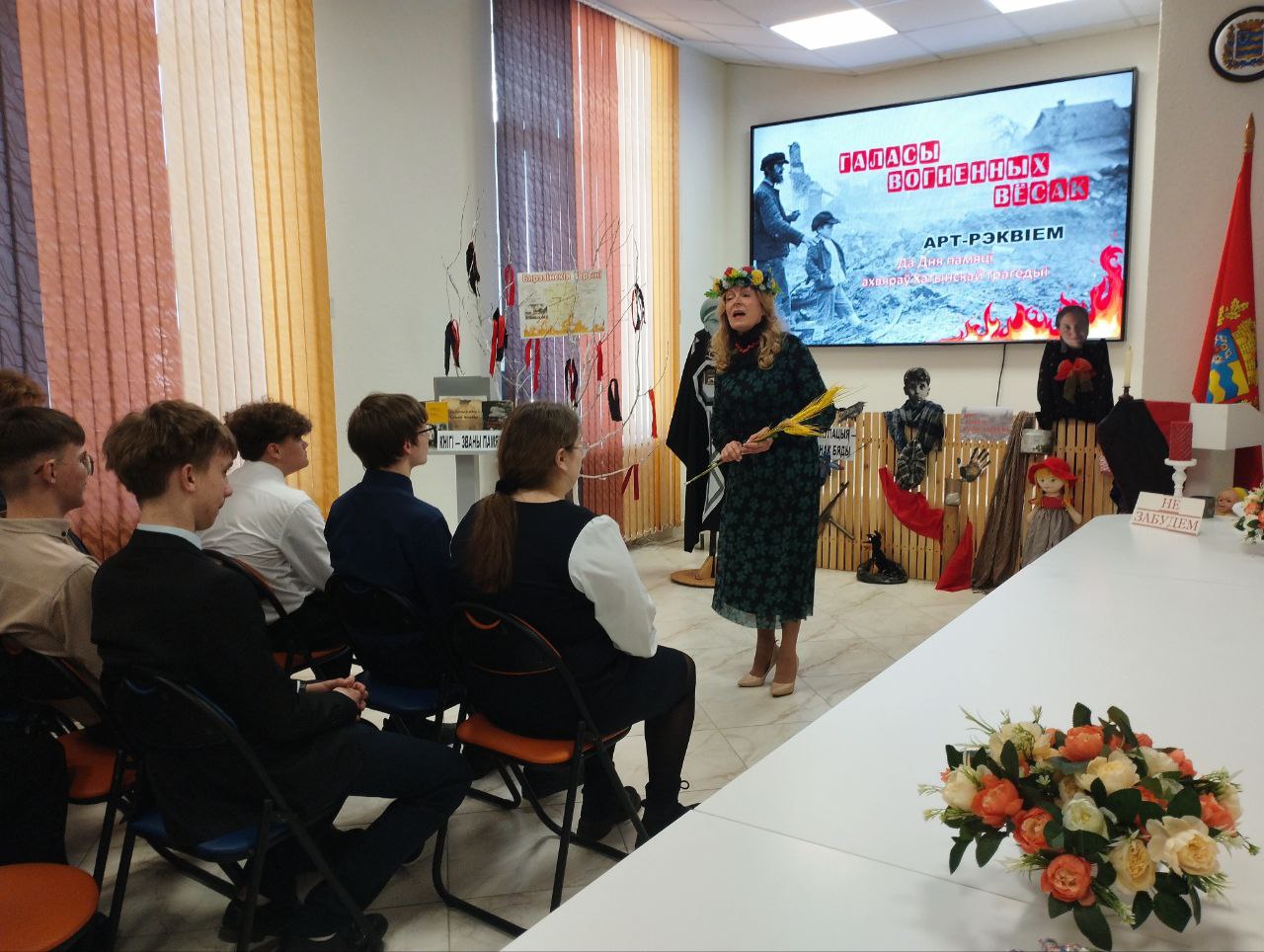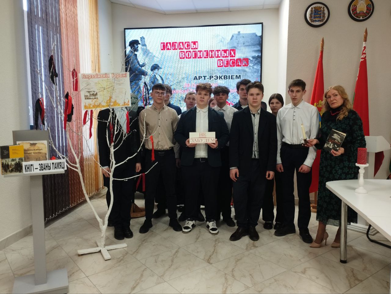 Страшная трагедыя вайны - спаленыя разам з жыхарамі вёскі. 22 сакавіка — журботны дзень памяці ахвяраў Хатынскай трагедыі: каб ведалі, памяталі, не дапусцілі паўтарэння падобнай трагедыі. У ходзе акцыі “Кнігі — званы памяці” праекта Бярэзінскай раённай бібліятэкі “Жывая кніга” бібліятэкары прадставілі старшакласнікам СШ № 2 г. Беразіно літаратурны рэквіем “Галасы вогненных вёсак” пад агульным лейтматывам “Памяць аб вайне нам кнігі зберагаюць”. У аснову арт-прадстаўлення былі пакладзены мастацка-дакументальныя творы А. Адамовіча “Хатынская аповесць”, Б. Сачанкі “Апошнія і першыя”, І. Сачука “І сніцца мне матуля і вайна”, С.Лобач “Маці Божая, адвядзі ад вайны” , якія малююць жорсткае аблічча вайны, гучаць як сведчанні-абвінавачванні. Прадстаўленыя ад першай асобы пякельныя споведзі ахвяраў спаленых вёсак узмацнялі ўспрыманне жудаснай праўды ў гісторыка-дакументальнай і мастацка-вобразнай сапраўднасці. Рэквіем-маналогі напаўнялі сэрцы юных сучаснікаў абвостранным пачуццём нянавесці да вайны іжаданнем жыць у мірным, спакойным свеце.
