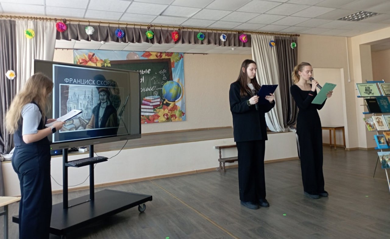 Шла речь о Франциске Скарина – славном докторе из города Полоцка, который впервые перевел Библию на белорусский язык, а затем напечатал, писал предисловия к своим книгам, делал чудесные рисунки-гравюры.
