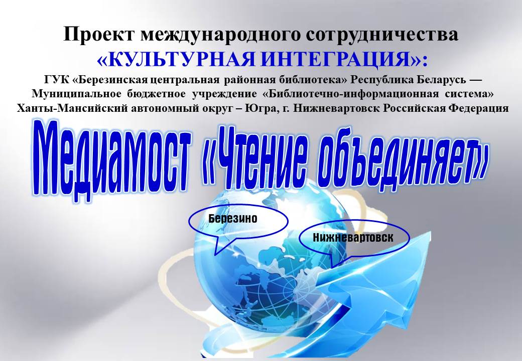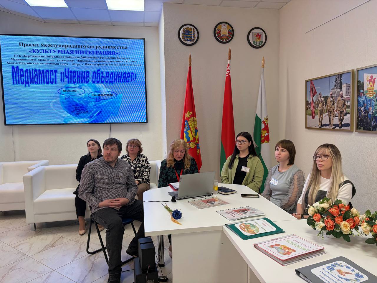 С марта 2025 г. ГУК «Березинская центральная районная библиотека» реализует проект международного сотрудничества «КУЛЬТУРНАЯ ИНТЕГРАЦИЯ» в партнёрстве с Муниципальным бюджетным учреждением «Библиотечно-информационная система» Ханты-Мансийского автономного округа– Югра (Российская Федерация). Модератором онлайн-мостов по обмену опытом выступает Центральная городская библиотека им. М.К. Анисимковой г. Нижневартовск. Программа первого в 2026 г. международного медиамоста «Чтение объединяет» предусматривала двухсторонний обмен творческими наработками и успешными практиками белорусских и российских коллег по сохранению и поддержанию интереса к чтению. Заведующий отделом маркетинга, социокультурной деятельности и методической работы ГУК «Березинская ЦРБ» Т.Н.Круталевич представила выступление с презентационным сопровождением на тему «Интерактивные формы популяризации художественной литературы» проекта «Живая книга». Сотрудники Центральной детской библиотеки, городской библиотеки №5, детской библиотеки №2 г.Нижневартовска представили формы активизации интереса к отечественной истории и литературе, стимуляция детского и семейного чтения. Российские коллеги отметили разнообразие форм массовой работы березинских коллег с литературно-художественной, дискуссионно-игровой, интерактивной основой, что позволяет через высокохудожественную литературу проводить воспитательно-профилактическую, просветительскую, агитационно-рекламную работу с населением. У березинских библиотекарей вызвал интерес цикл «Живой портрет неспокойной эпохи» проекта «Русский характер», приёмы популяризации терапевтических сказок,работа семейного клуба «Читайкины выходные».
